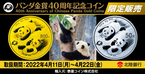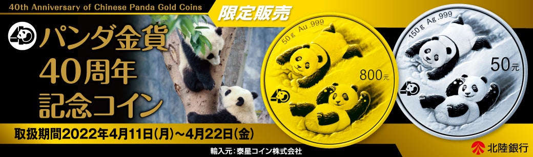 北陸銀行(頭取 庵 栄伸)は、2022年4月11日(月)から「パンダ金貨40周年記念コイン」の日本国内での予約販売をいたしますので、下記のとおりご案内申しあげます。
