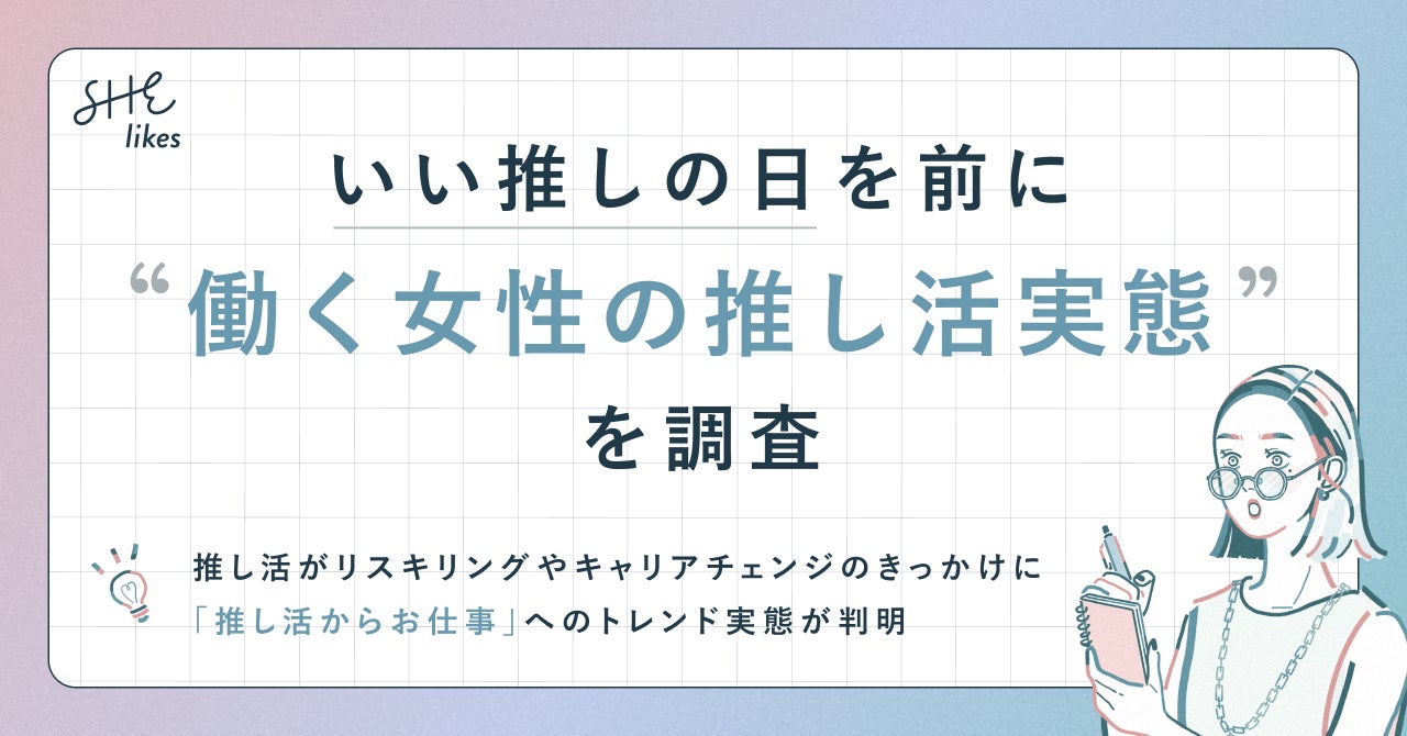 学ぶから働くまでを支援する女性向けキャリアスクール「SHElikes(シーライクス)」を運営するSHE株式会社(所在地:東京都港区、代表取締役CEO/CCO:福田恵里、以下SHE)は、11月4日の「いい推しの日」を前に、働く女性500名を対象に「働く女性の推し活実態調査」を実施しました。