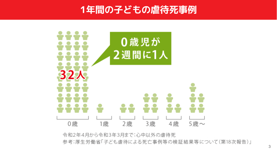 しかし、現実は厳しく、0歳児の虐待死は後を絶ちません。