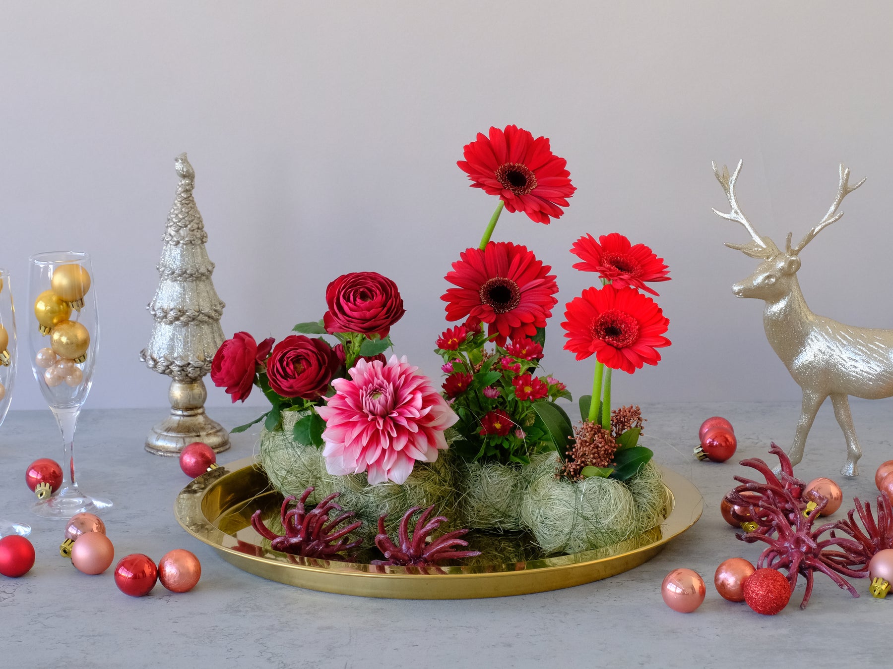 『赤い花のホリデーアレンジメント』