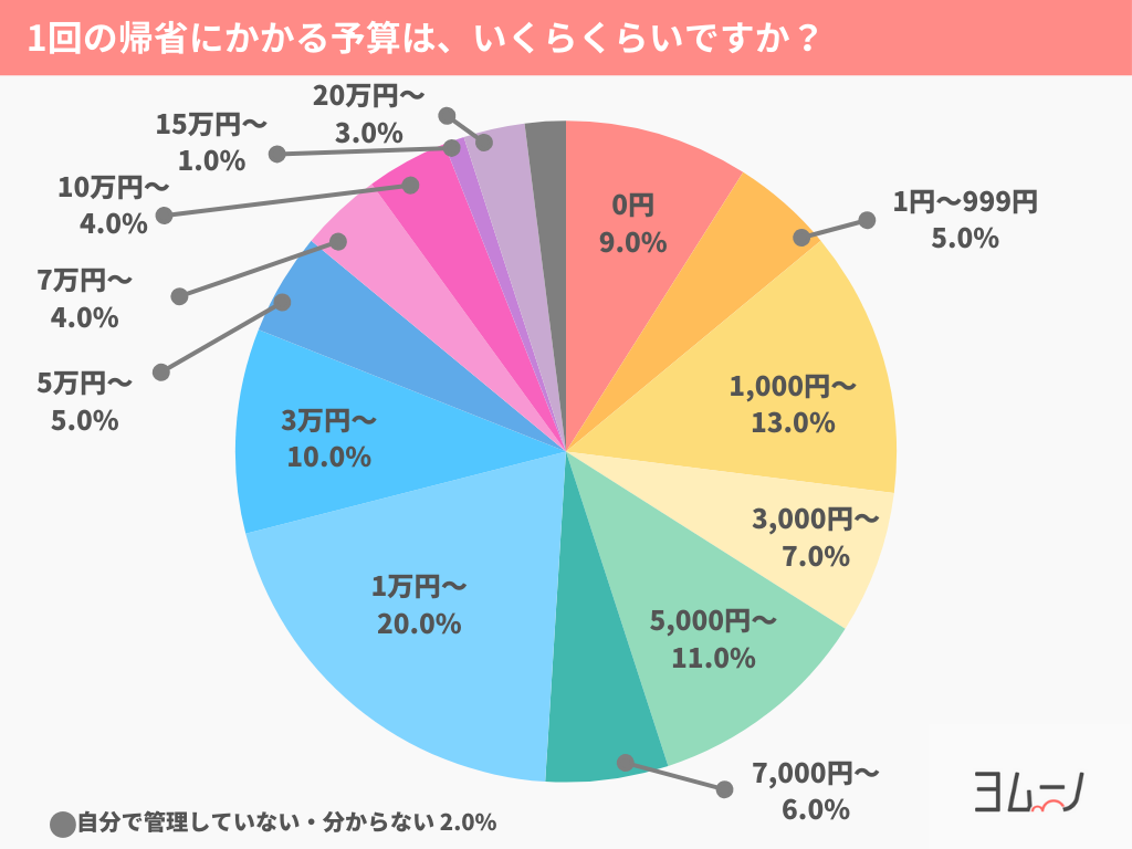 一方で、「10万円以上」と回答した人も合計8.0%おり、帰省先が遠方の家庭や大家族での移動など、費用負担が大きいケースも見られます。