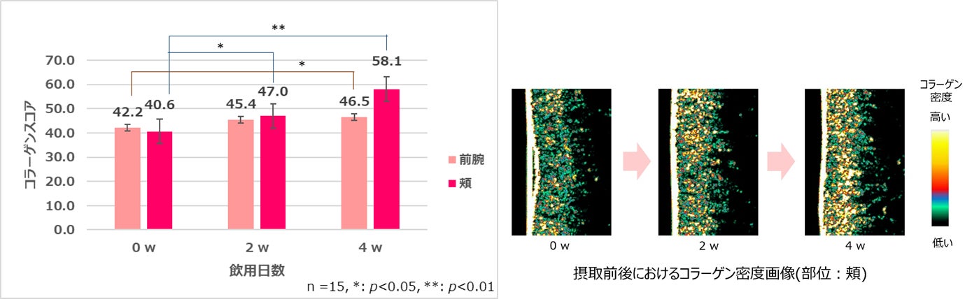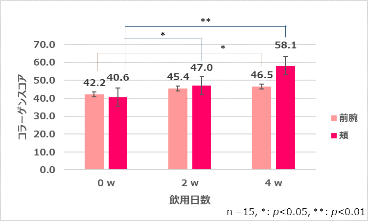 【図2:ドリンク摂取前後におけるコラーゲン密度の変化】
