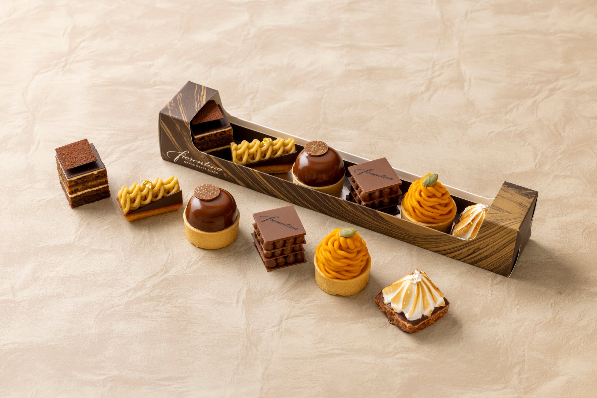 マロン、洋梨、パンプキン3種類のプレミアムショートケーキなどもご用意 手土産にも最適なひと口サイズの秋の小菓子6種類セットの新作も~ グランド ハイアット 東京 2024 Autumn ~