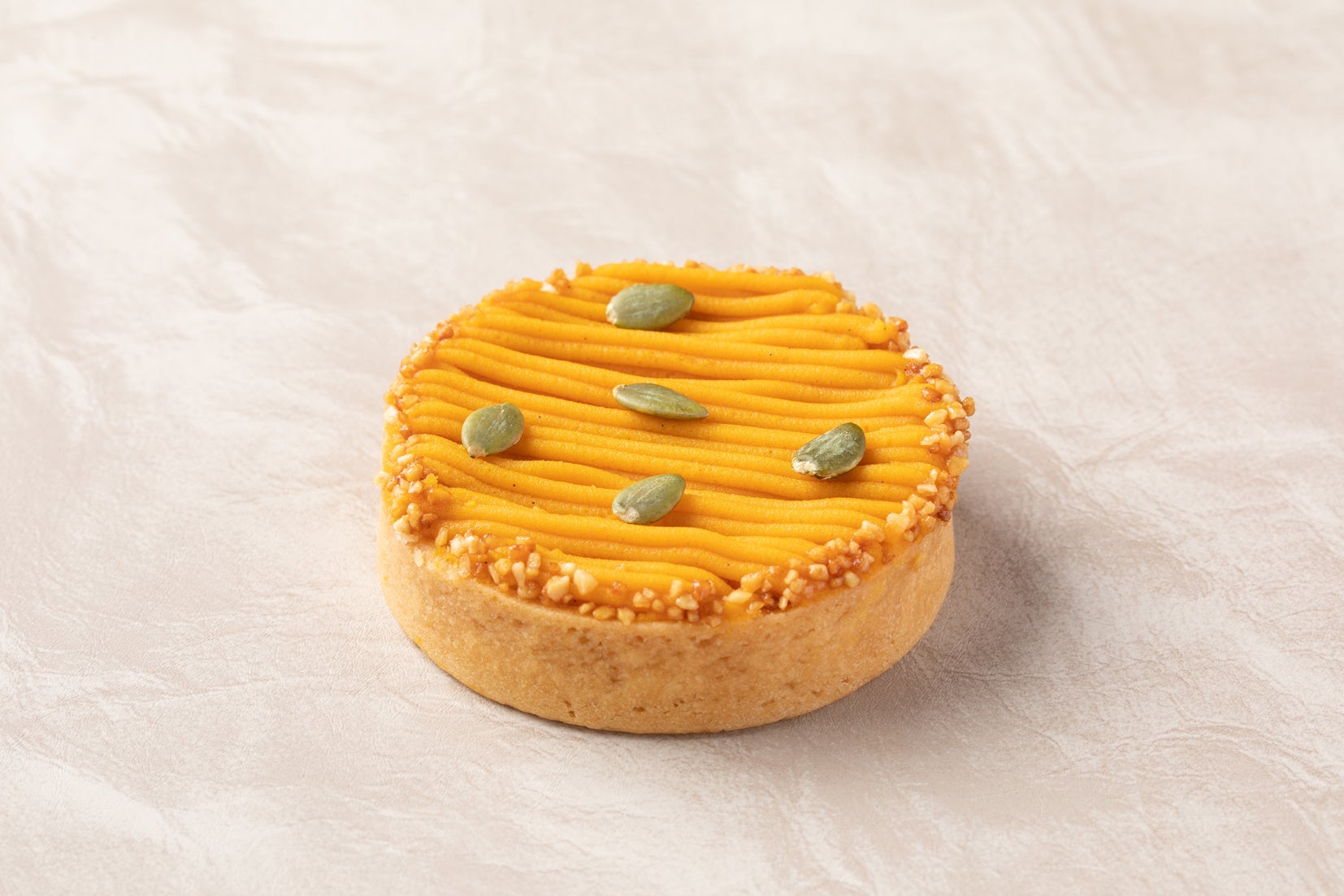 北海道産のかぼちゃをつかった優しい甘さが広がるなめらかな口どけのパンプキンタルト。タルト生地にはパンプキンペースト、クリームチーズ、ミルクジャムを合わせたクリーム、さらに上からパンプキンペーストを絞ったかぼちゃの素材の味を存分に感じていただける一品です。