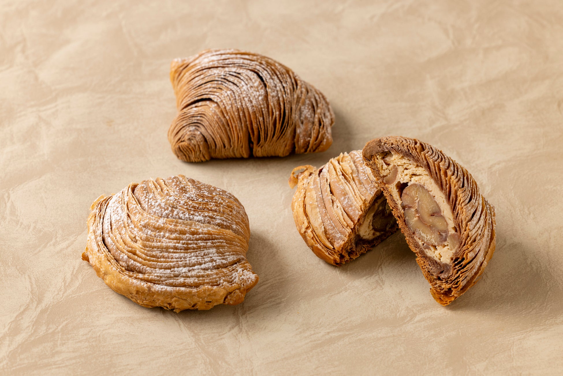 毎日ホテル内で消費されるブレッドを焼き上げるベーカリーチームからは、きのこや栗などの旬の食材をつかい、食感にもこだわったシェフの技術が光る2種類の新作ブレッドが登場いたします。また、ペストリーチームからは、何層にも薄く重ねたパイ生地が特徴のスフォリアテッレの秋限定フレーバーをご用意いたします。