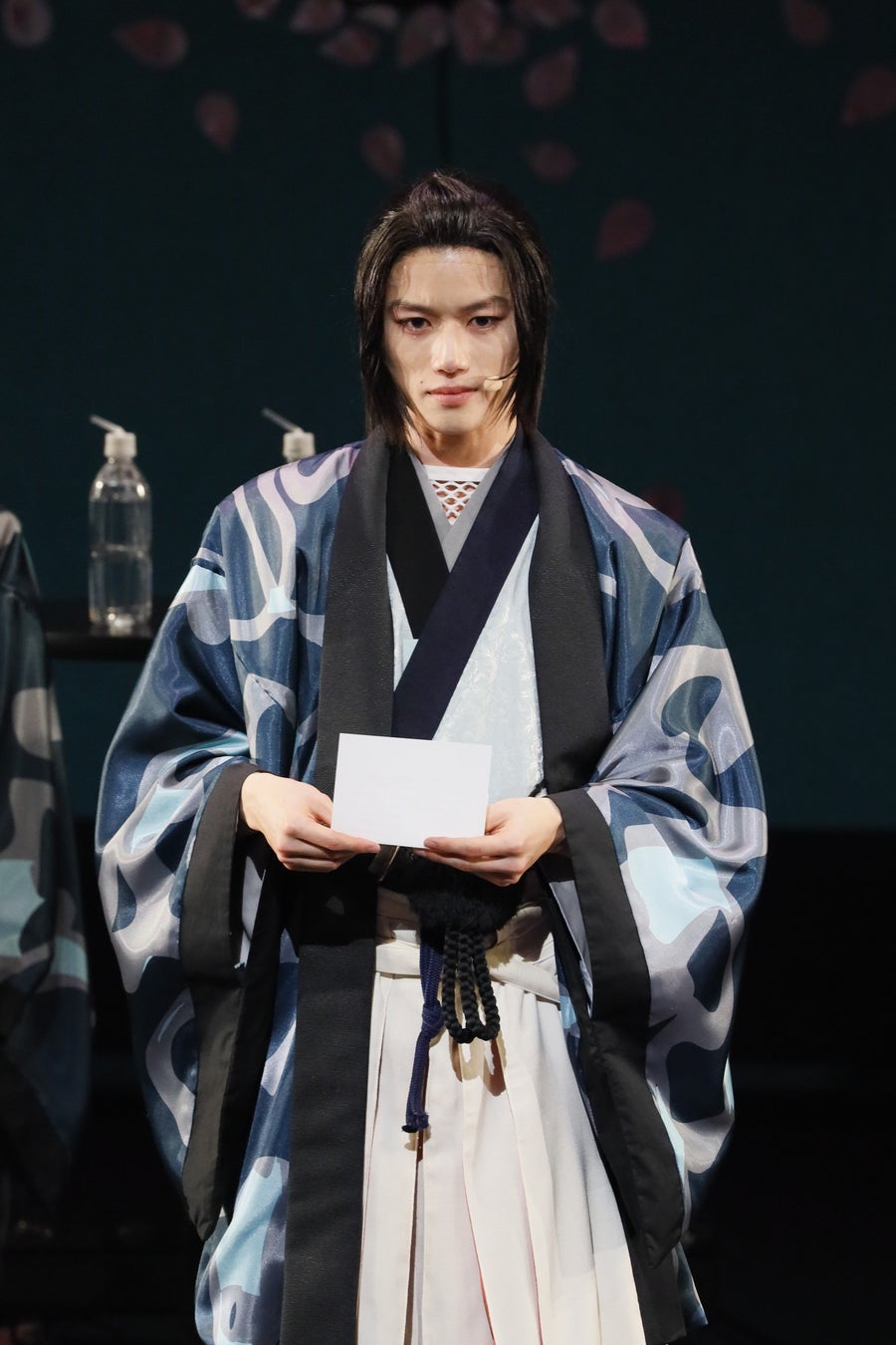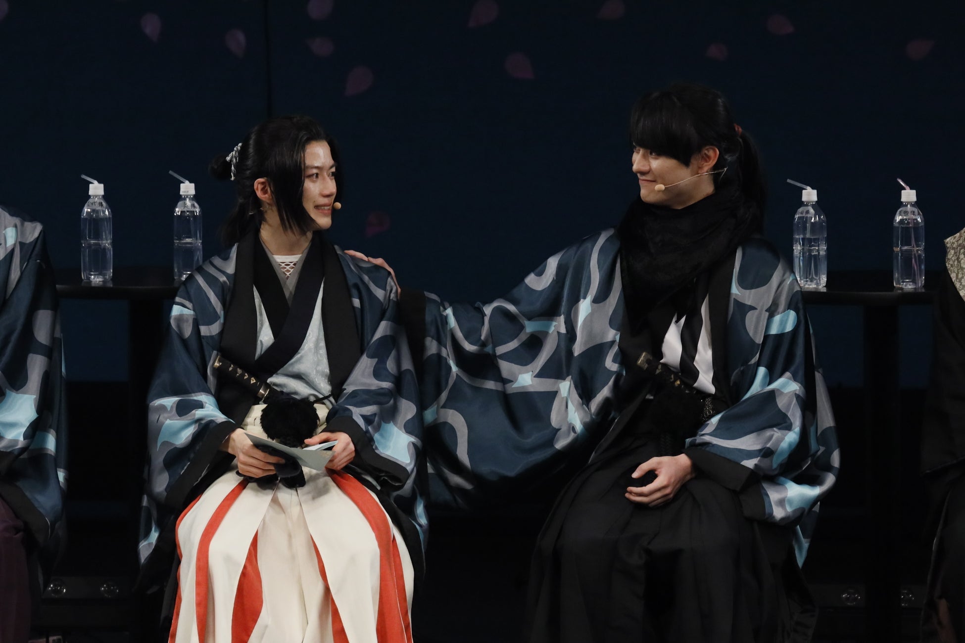 大千穐楽公演終盤、サプライズで渋皮喜平 役・簡秀吉、庄内玄悟 役・上野凱からのビデオメッセージが流れると、会場は一気にしんみりムード。さらに、前田・奥両名がこの日のためにそれぞれしたためた手紙を読み上げました。これまでの思い出や苦労、キャストやスタッフ陣への想いを語る場面では、奥が声を詰まらせ、涙する場面も。
