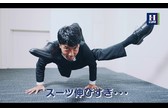 『お辞儀の仕方篇』では、人事部長が新入社員に「社会人の基本はお辞儀だ!」とお辞儀の仕方について熱く指導。新入社員もそれに答えるよう、全力で深々としたお辞儀を見せます。それに対して「こうだ!」と人事部長がお手本を見せますが、そのお辞儀は上半身を180度に曲げたありえないお辞儀。そんなポーズにも応える伸縮性のあるスーツに新入社員は思わず「スーツ伸びすぎ・・・」と、唖然とします。『エレベーター篇』は、新入社員がエレベーターに乗っているシーンから始まります。エレベーターのドアが開くと、そこにはまたもやありえないヨガポーズをとった人事部長の姿が。人事部長の複雑なポーズとそれに対応しているスーツの伸縮性に、新入社員は「スーツ伸びすぎ・・・」と、またしても唖然としてしまいます。ありえないヨガポーズと伸びすぎるスーツの伸縮性に驚くこと間違いなしのWEB動画となっています。