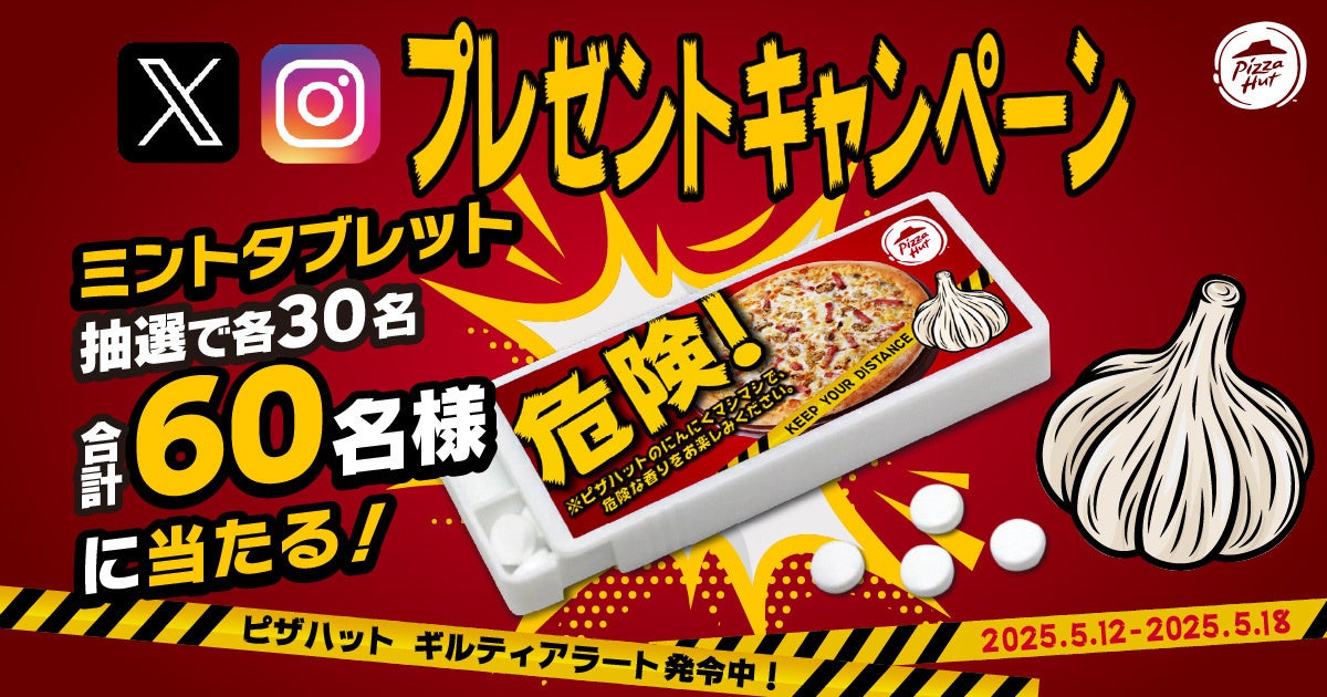 2025年5月12日(月)より、ピザハット公式Xアカウントと公式Instagramアカウントにて抽選で30名様ずつ計60名様に、ギルティアラート発令中につき、【非売品ミントタブレット】が当たるプレゼントキャンペーンを開催いたします。