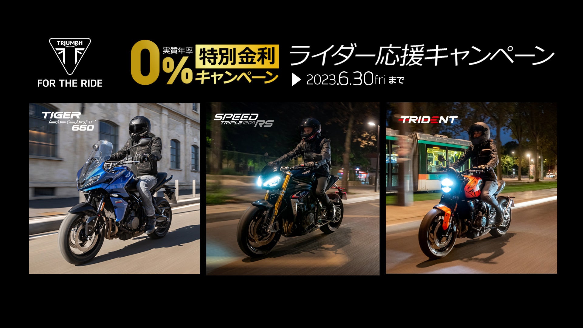 Trident 660、Tiger Sport 660、Speed Triple 1200 RS に0% の特別金利ローンが登場!