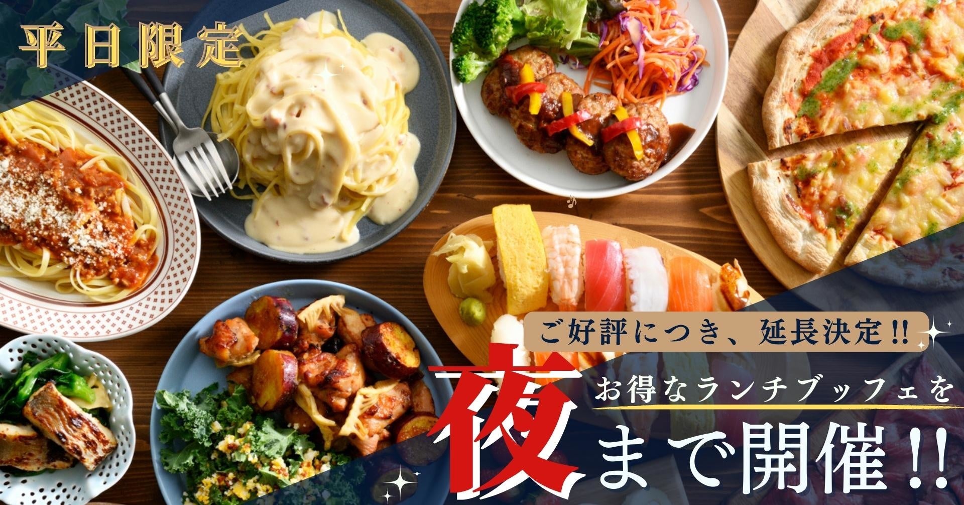 【ご好評につき延長開催‼】平日限定♪ ニラックスブッフェにて大人気の『ランチブッフェ』を夜まで延長!