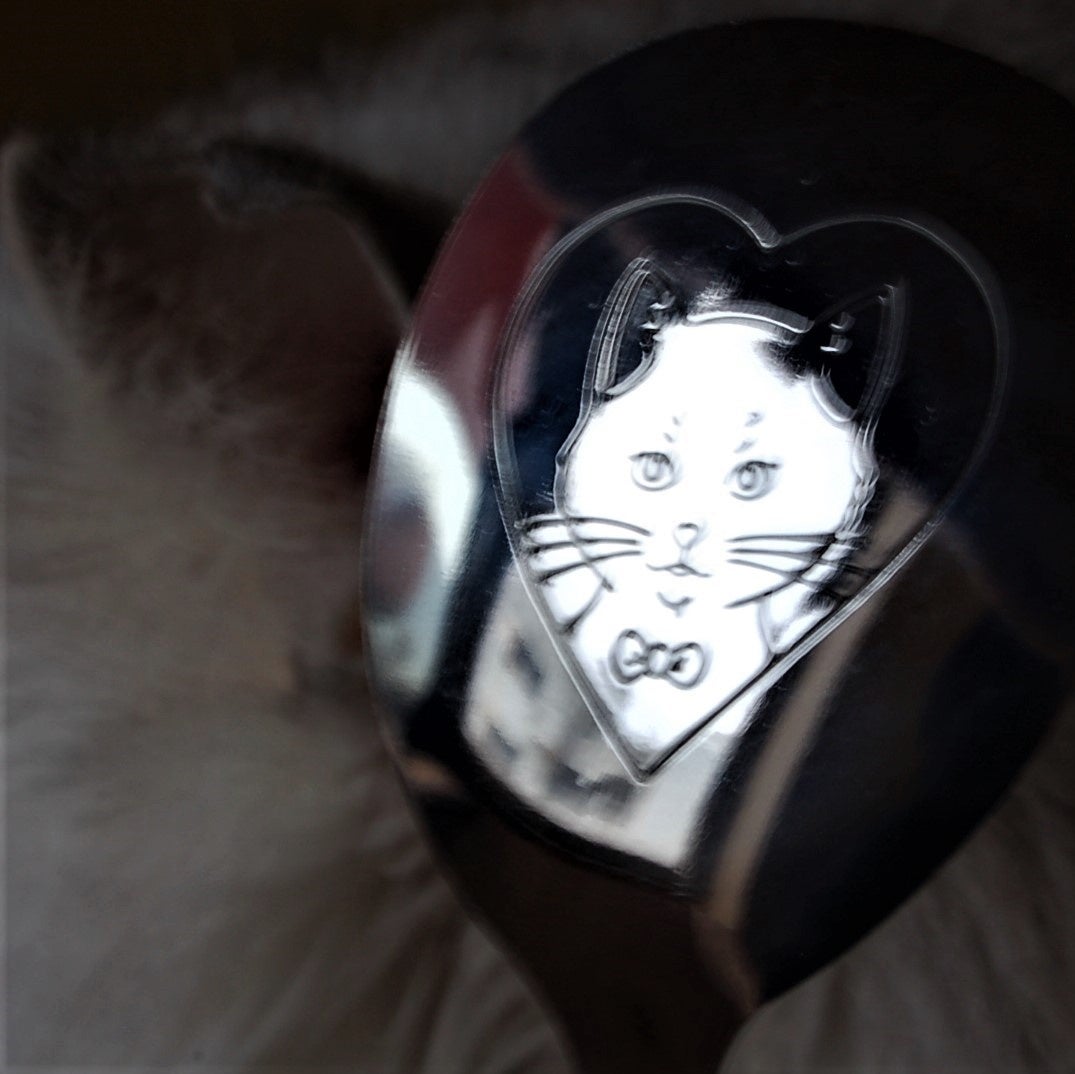 スプーン背面にはハートの中に猫の刻印 表情がいかにも欧州のネコ