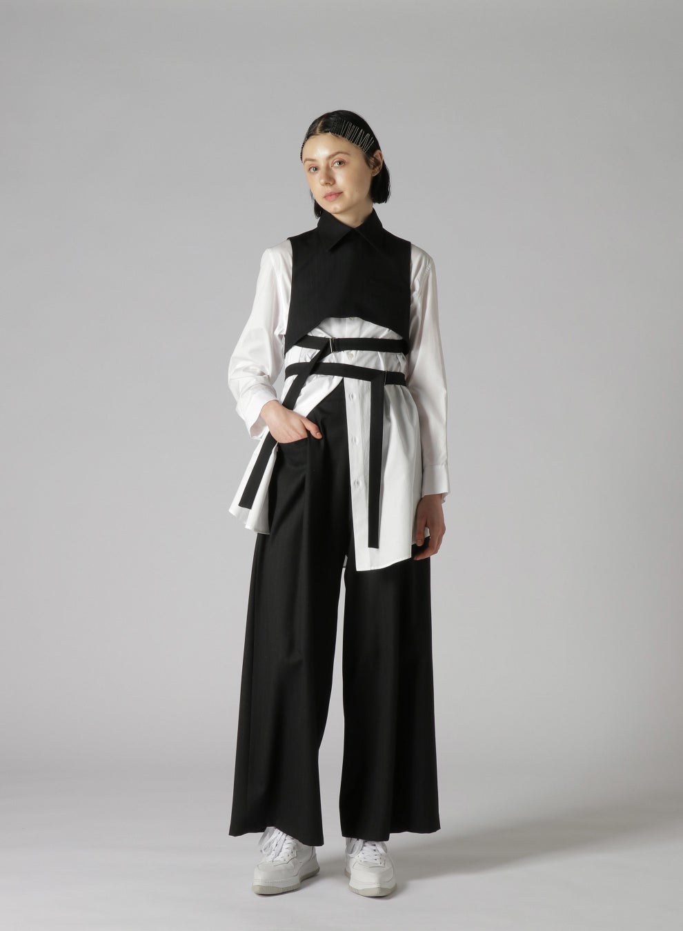 GILET 41,800 yen BLOUSE 72,600 yen PANTS 46,200 yen SHOES 77,000 yen(8月発売)