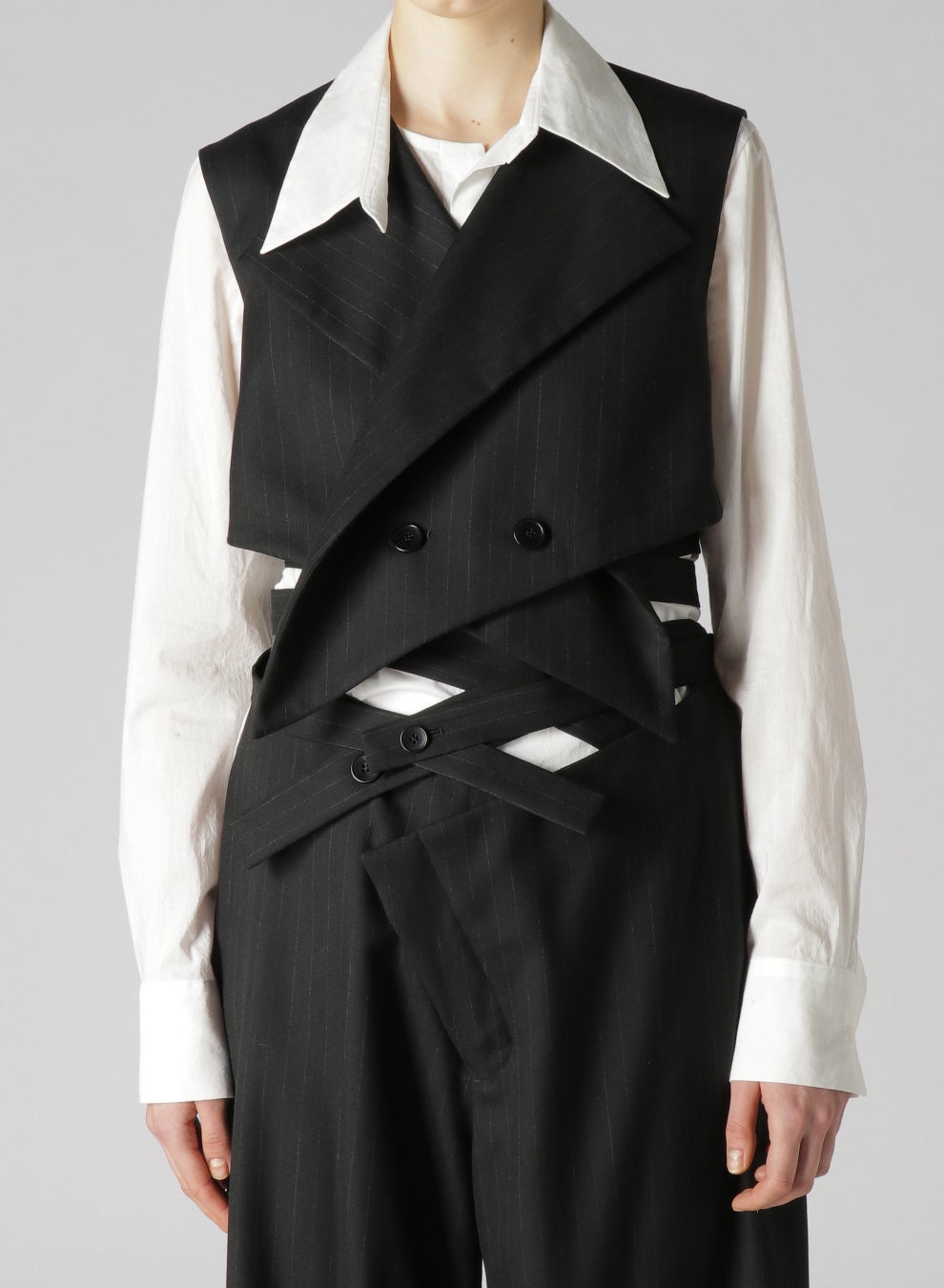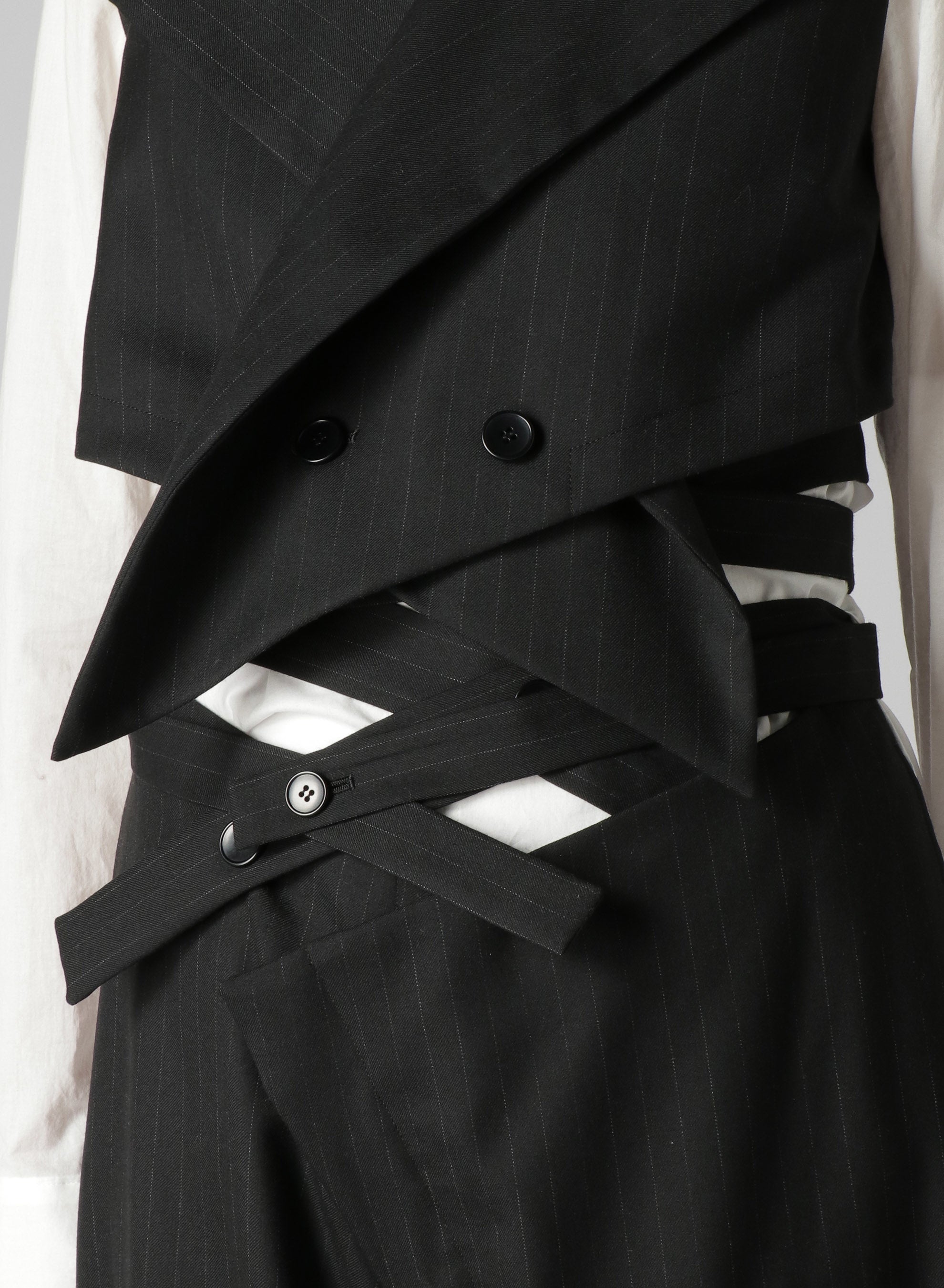 他にも同素材によるW前デザインのロングベルト・ジレも登場。GILET 44,000 yen