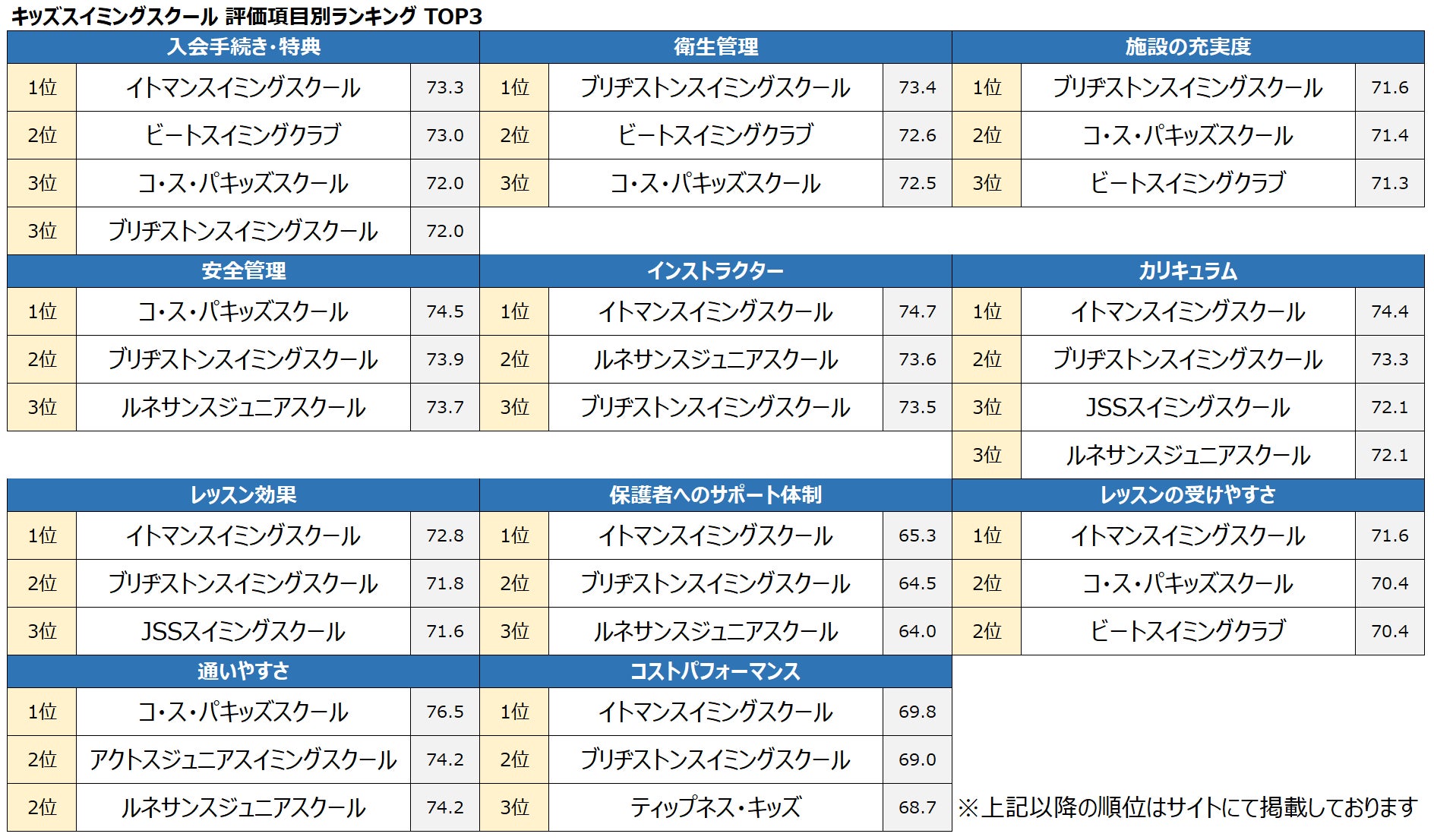 【イトマンスイミングスクール】が初の総合1位、7評価項目でも1位を獲得