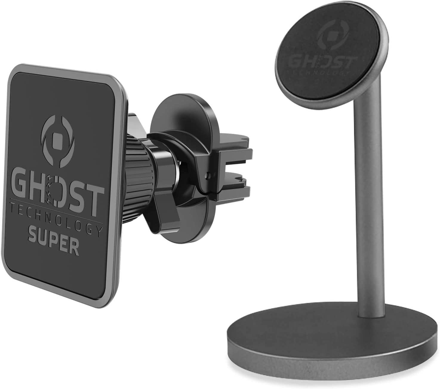 [GHOST TECHNOLOGY] エコシステム対応製品。Celly GHOST SUPER PLUSに、デスクトップ用スマートフォン・マグネットホルダGHOSTDESKを同梱。スマートフォンを車でも家でもマグネットで簡単に台に設置!