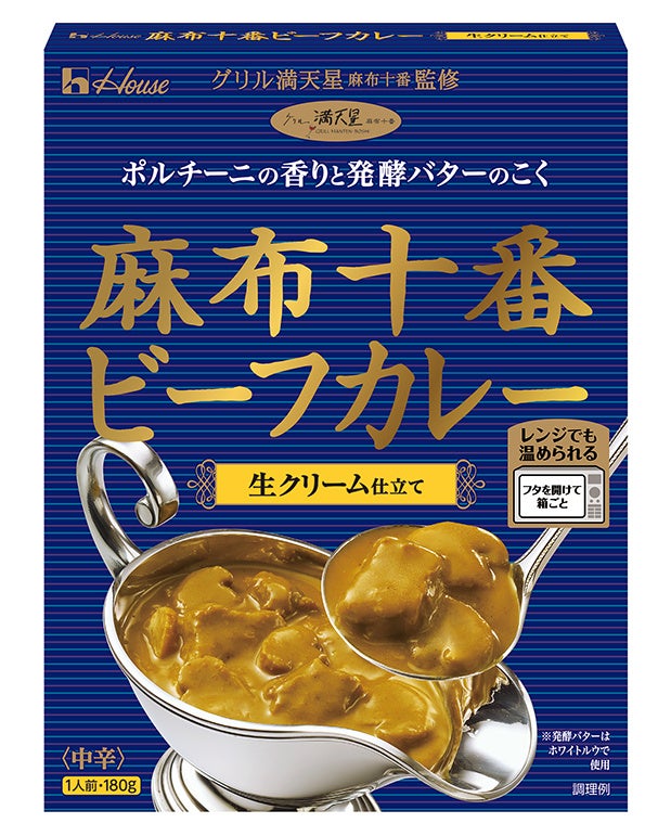 ハウス食品は、レトルトカレーの「麻布十番ビーフカレー」<特製デミグラスソース仕立て><生クリーム仕立て>を、レンジ加熱に対応したパウチにリニューアルし、2月14日からスーパーなどで発売します。洋食の名店「グリル満天星」が監修するフレンチソースのおいしさを生かしたカレーを、調理の簡便性を高めて、ご家庭にお届けします。内容量は180g、税別希望小売価格418円。
