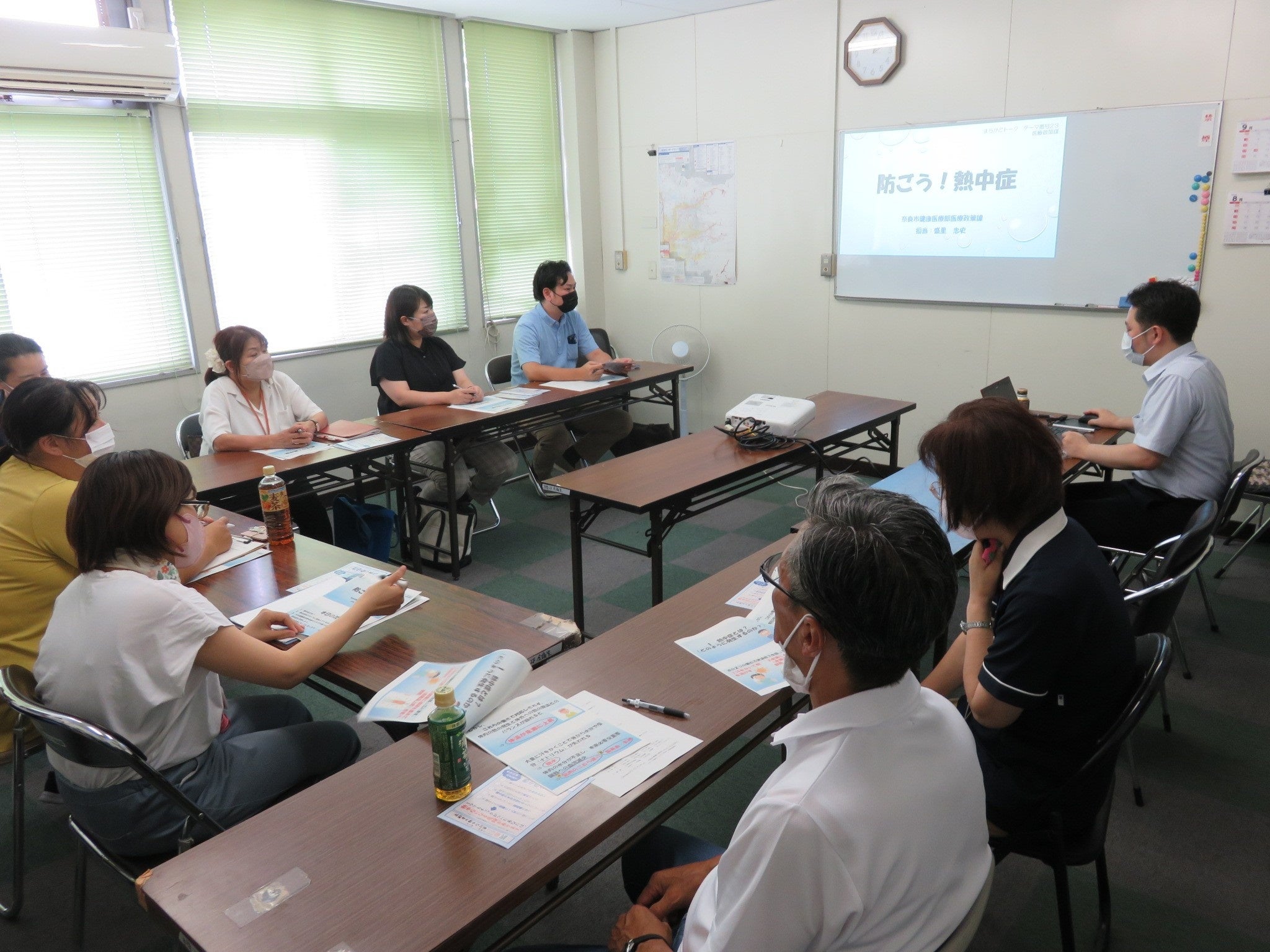 ◆奈良市熱中症対策会議を開催し、環境省や独立行政法人環境再生保全機構の職員をお招きしてご講演いただいたほか、「ひんやりオアシス」にご協力いただく郵便局や奈良市薬剤師会の担当者や、本市の熱中症対策にご協力いただいている大塚製薬や奈良クラブの担当者も交えて、庁内関係課の職員に熱中症対策の情報共有を実施