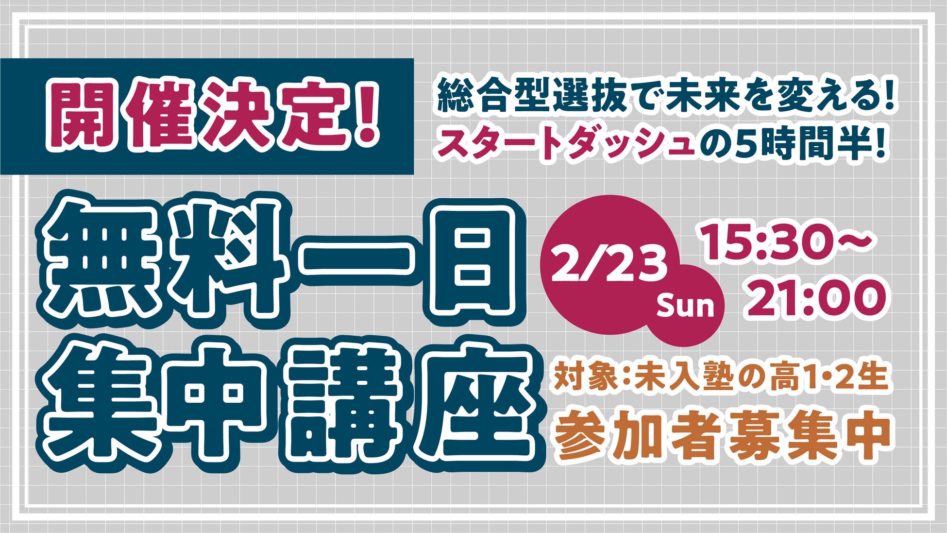 未入塾者対象の無料一日集中講座開催決定!参加者募集中