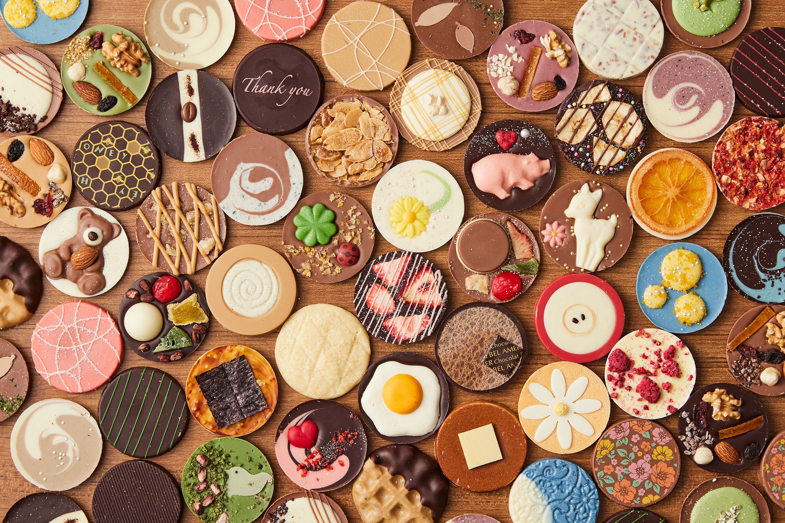 バンビやてんとう虫など可愛らしいモチーフをのせたショコラや、アップルパイ、あんみつ、メロンパンなどスイーツをパレショコラで表現したショコラなど豊富なバリエーションをお届けします。