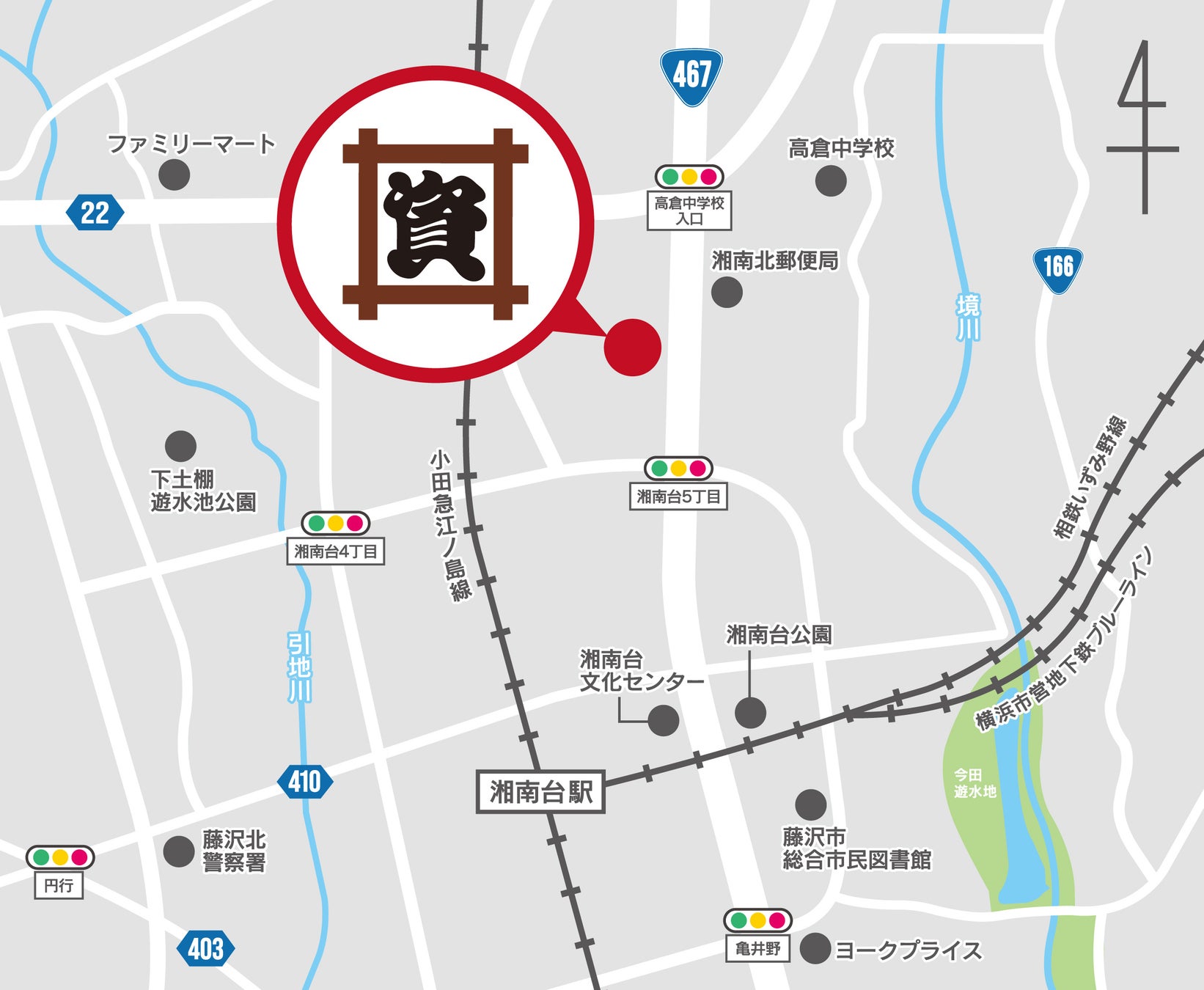 「資さんうどん藤沢湘南台店」は、湘南台駅からほど近い国道467号線沿いに位置し、藤沢市北部や綾瀬市方面からもアクセスしやすい立地です。公共交通機関では、小田急江ノ島線・相鉄いずみ野線・横浜市営地下鉄ブルーラインの3路線が乗り入れる「湘南台駅」から徒歩約10分と、電車でのアクセスも便利です。周辺には住宅街が広がる落ち着いた環境の中にあり、地域の皆さまの日常生活に寄り添う店舗として便利にご利用いただけます。
