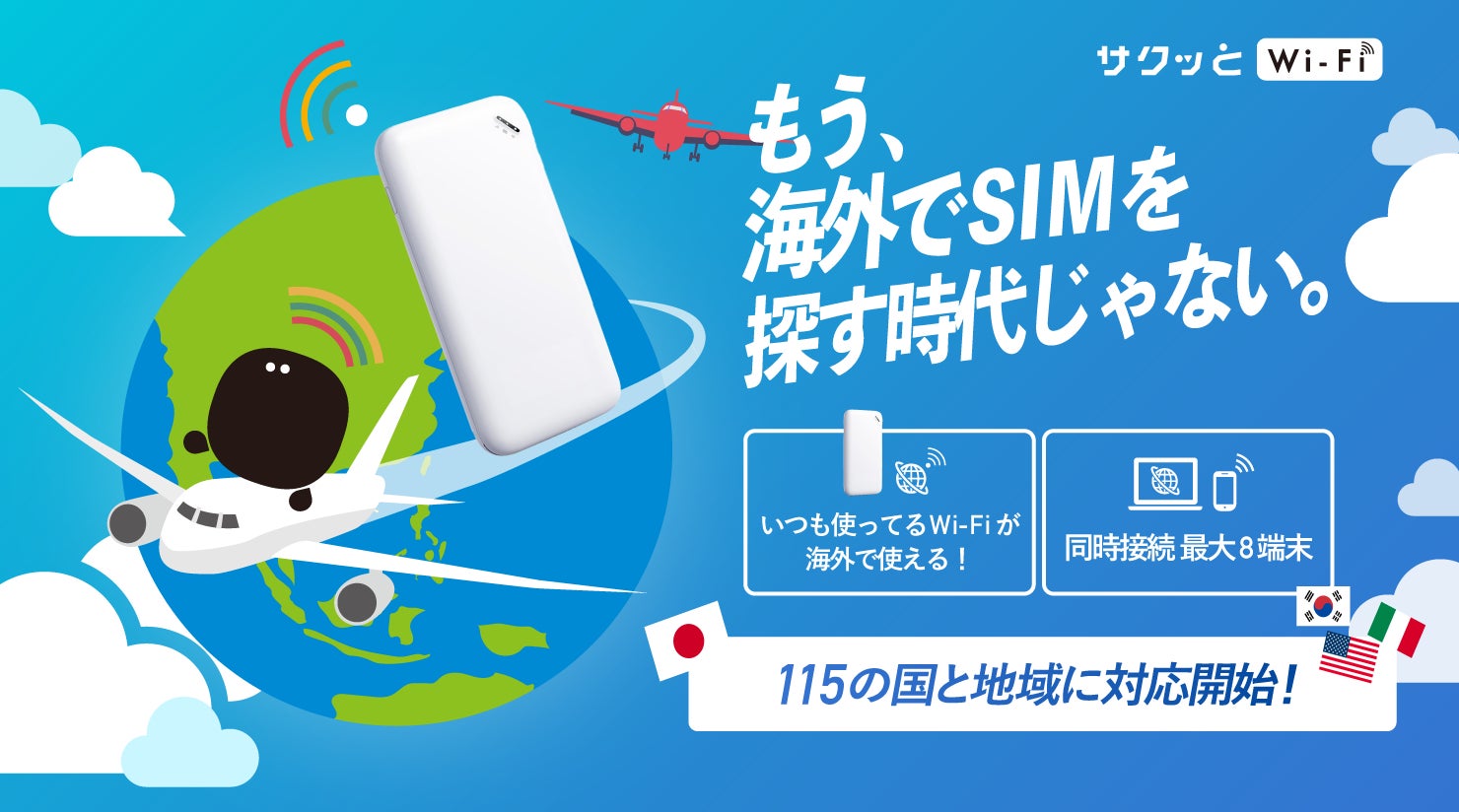 ※サクッとWi-Fiは、国内3キャリア(docomo / au / SoftBank)および海外115以上の国と地域に対応しています。詳細は公式サイトをご確認ください。