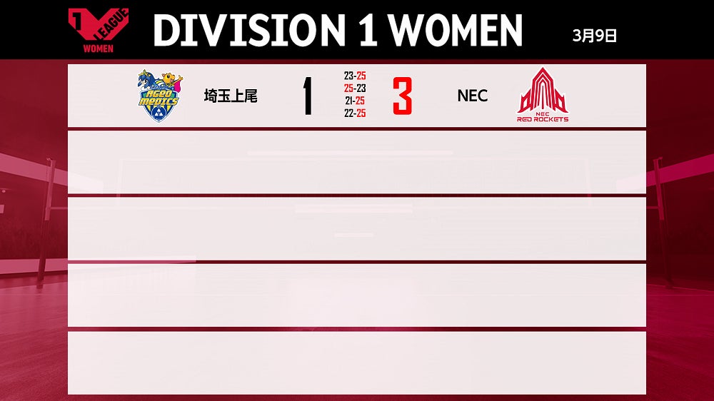 バレーボール国内最高峰リーグ V.LEAGUE【3月9日の試合結果】