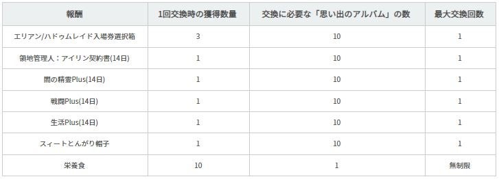 それらの「思い出」はイベントページにて下記の報酬と交換することが出来ます。