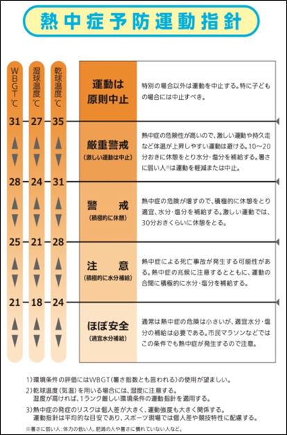 ※1 日本スポーツ協会では「熱中症予防運動指針」を公表しています。大会期間中は、本指針で“運動は原則中止”にあたる、WBGT計31℃を上回る危険な環境温度になることが予想されます。