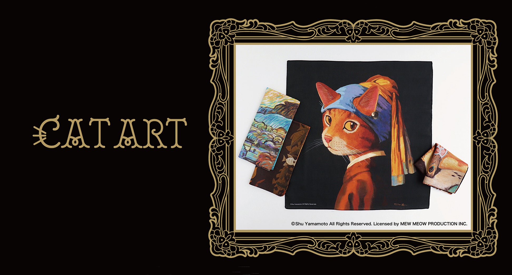 海外で活躍するシュー・ヤマモト氏による、猫(CAT)と美術(ART)を組み合わせた「CAT ART」。「モナ・リザ」や「真珠の耳飾りの少女」など、教科書や美術館で見たことのある歴史的名画を「猫」に置き換えたことで、難しい絵画の枠を超えて、大人から子どもまで親しみをもって楽しんでいただける作品となっています。美しさとユーモアを兼ね備えたアートは、ネコ好きはもちろん絵画ファンからも熱く支持されています。そんな作品たちを、より身近に感じて頂けるような商品に仕上げました。