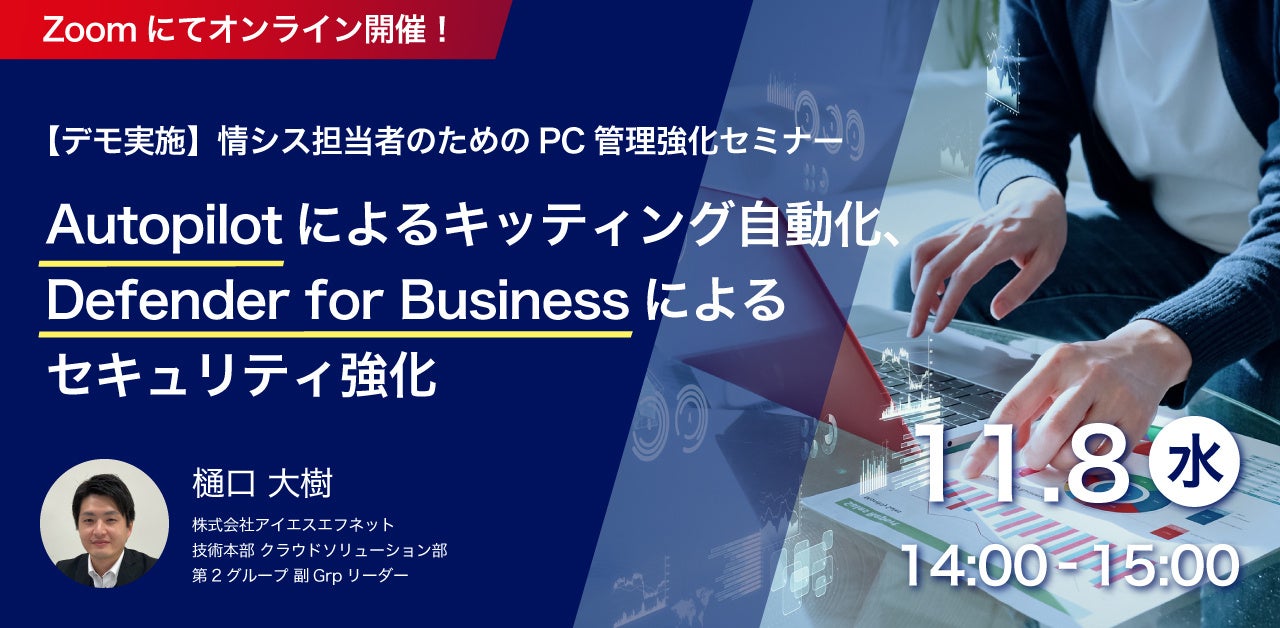 11/8開催【デモ実施】情シス担当者のためのPC管理強化セミナー~Autopilotによるキッティング自動化、Defender for Businessによるセキュリティ強化~