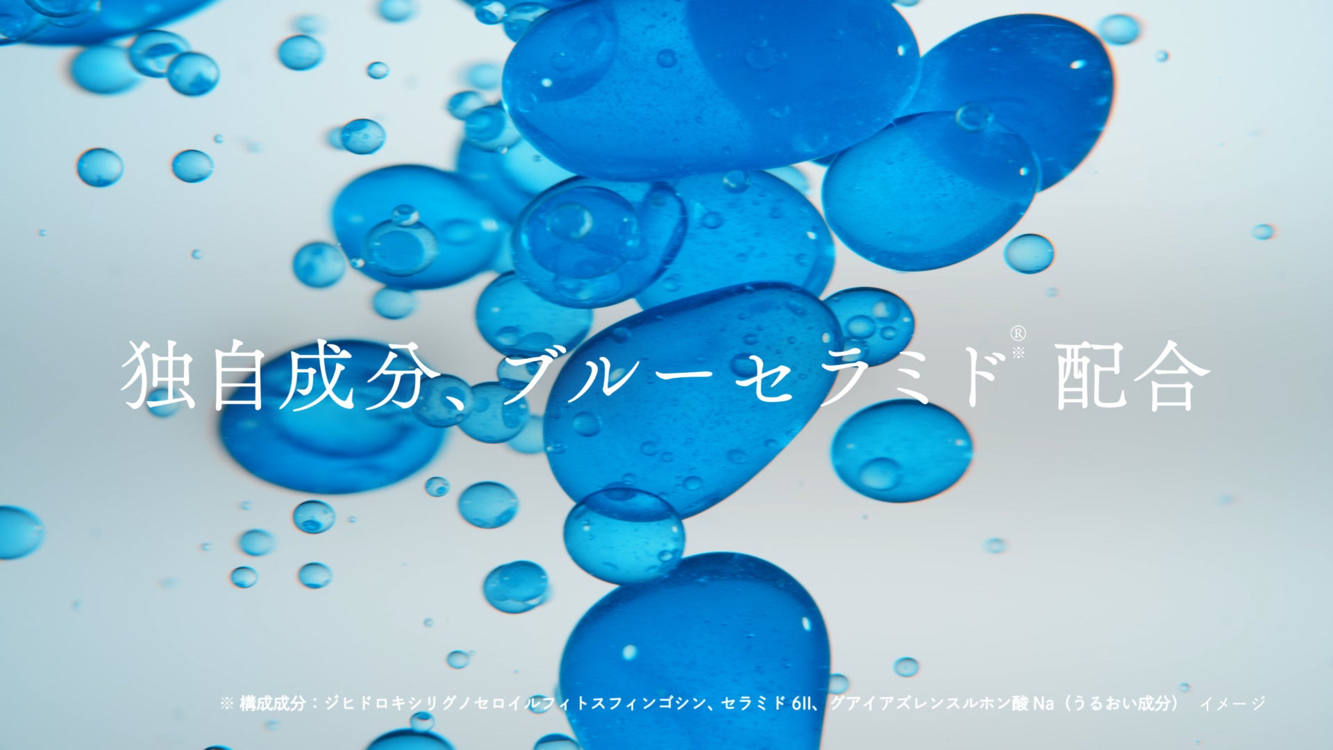 「ブルーセラミド※4」配合。発酵技術から見つけた天然セラミド「ナノ化発酵セラミドプラス」と青い天然型機能成分「グアイアズレンスルホン酸Na」の独自複合成分。うるおって肌荒れを防ぎ、透明感を引き出します。うるおい湧き上がるような澄んだハリ肌へ導きます。
