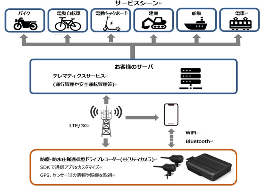 株式会社JVCケンウッドは、二輪や船舶、電車など、さまざまなモビリティ分野で利用できる新たなデバイスとして、防塵・防水仕様※1の通信型ドライブレコーダー(モビリティカメラ)を開発しました。本機は、顧客のニーズに応じて外部システムとの連携を自由にカスタマイズでき、短期間でのIoT・AIベースのテレマティクスサービス開発を可能とします。