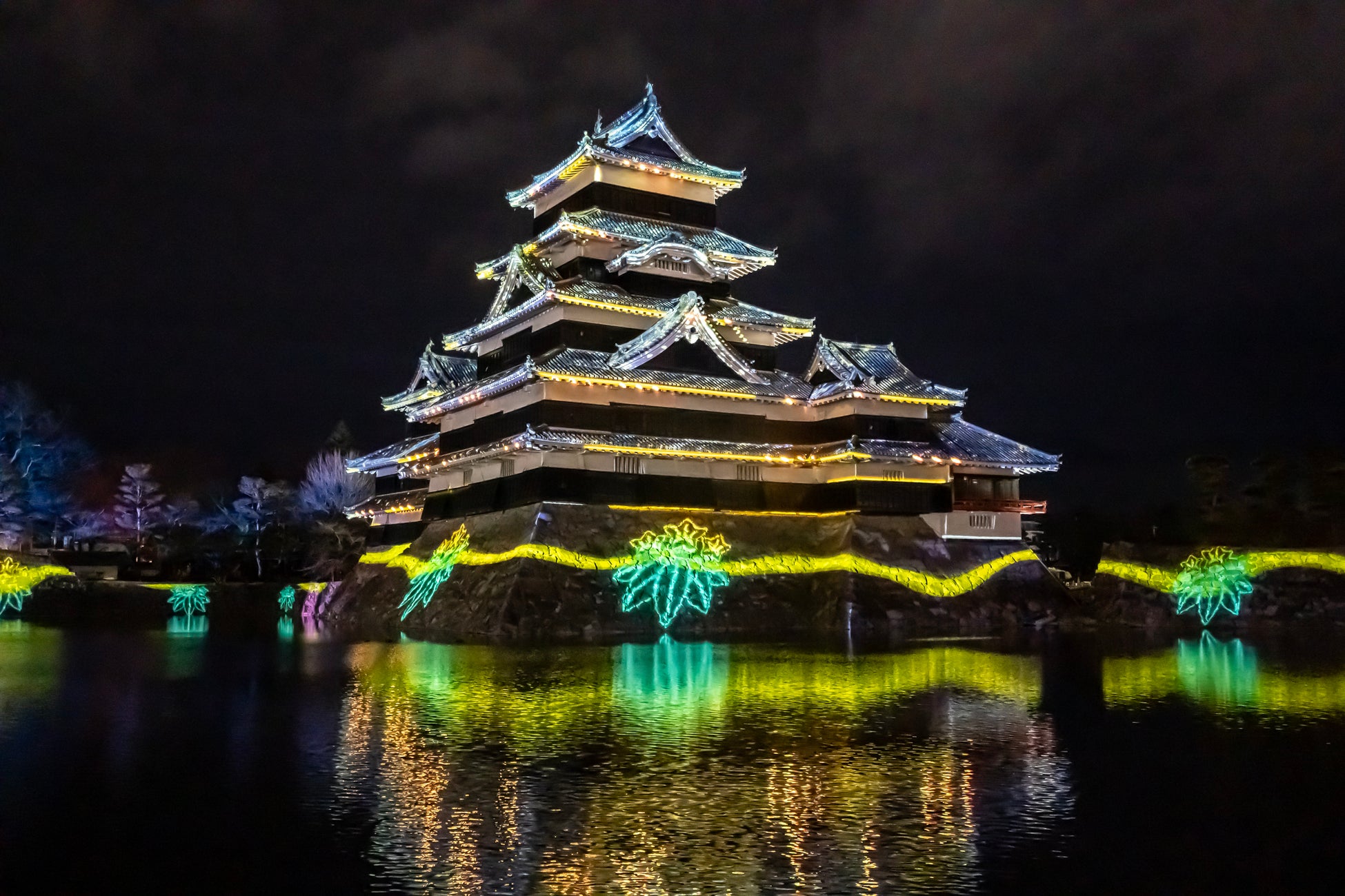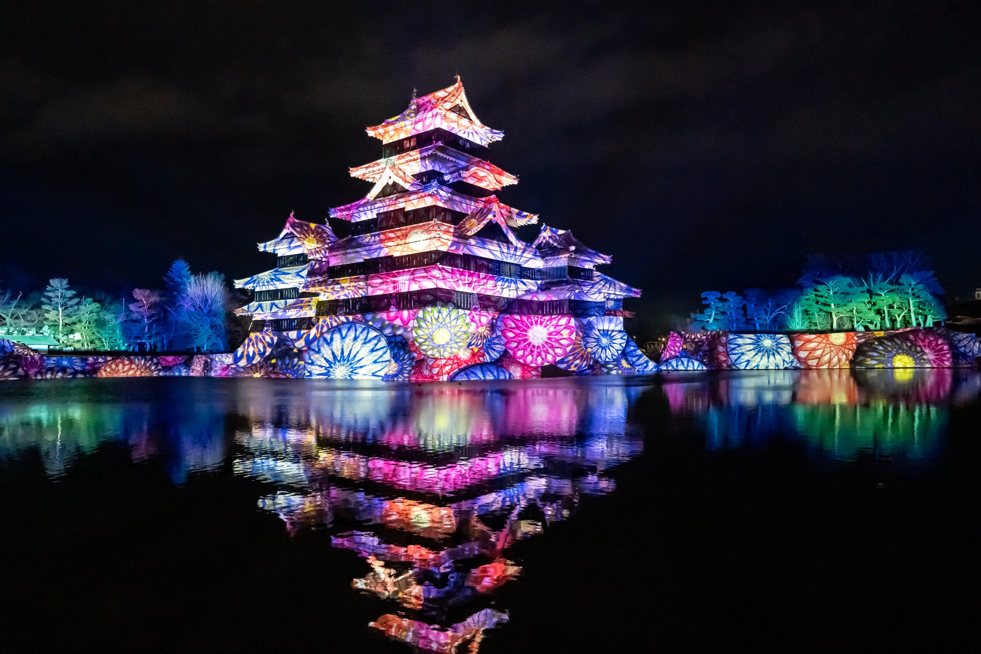 冬の松本城天守を彩る絢爛豪華なプロジェクションマッピングを、ぜひお楽しみください。