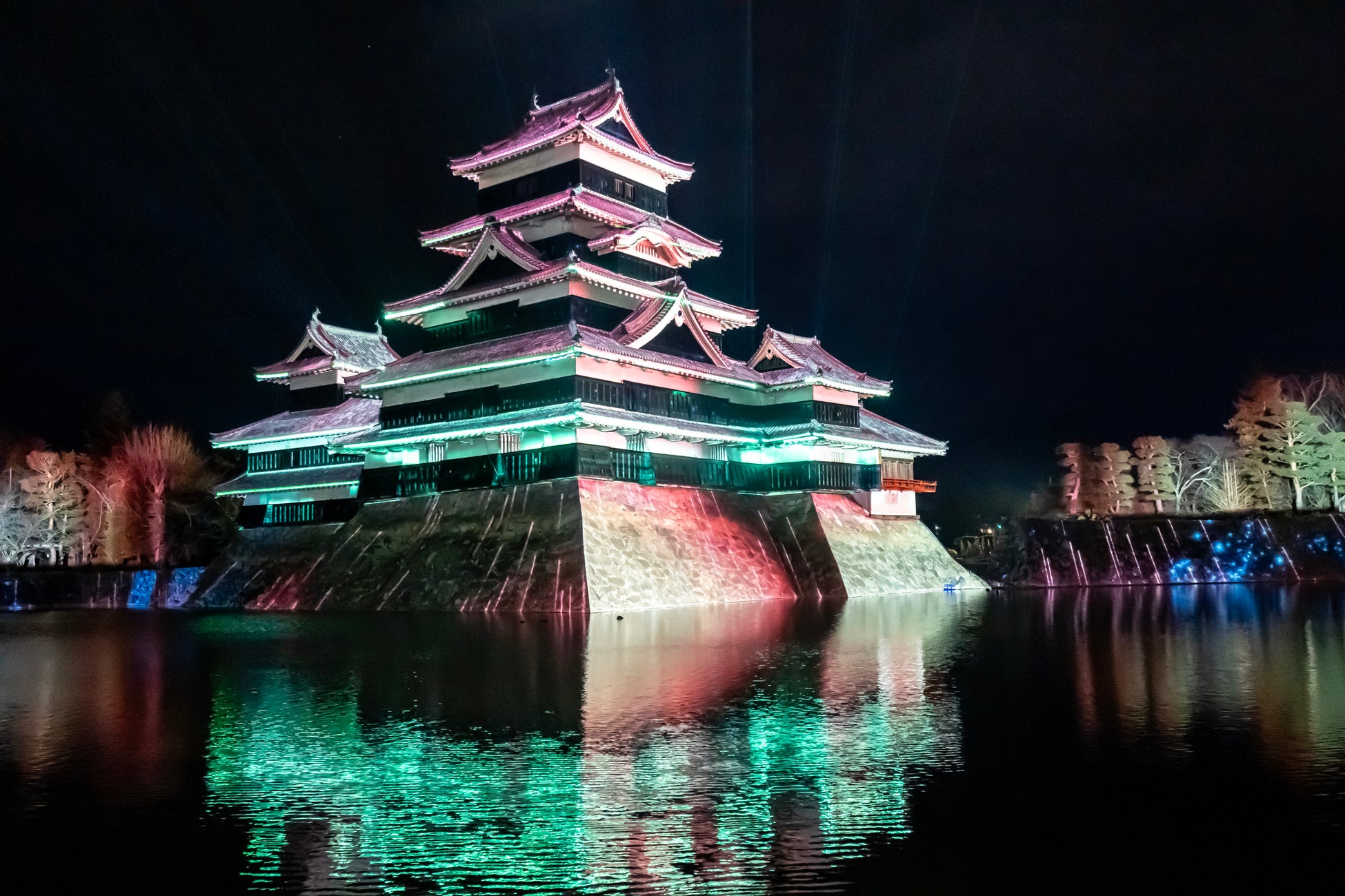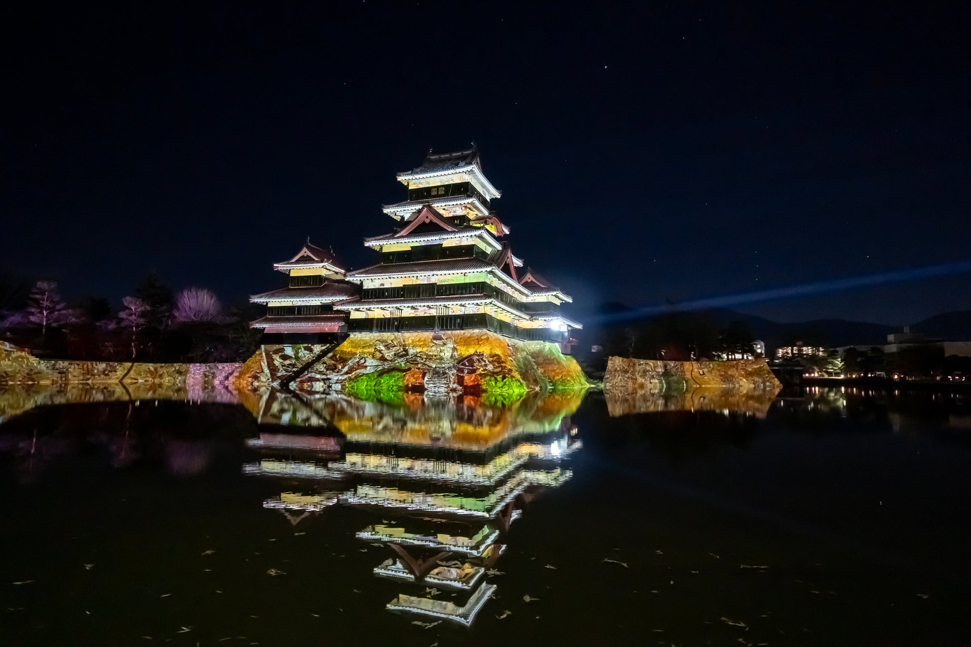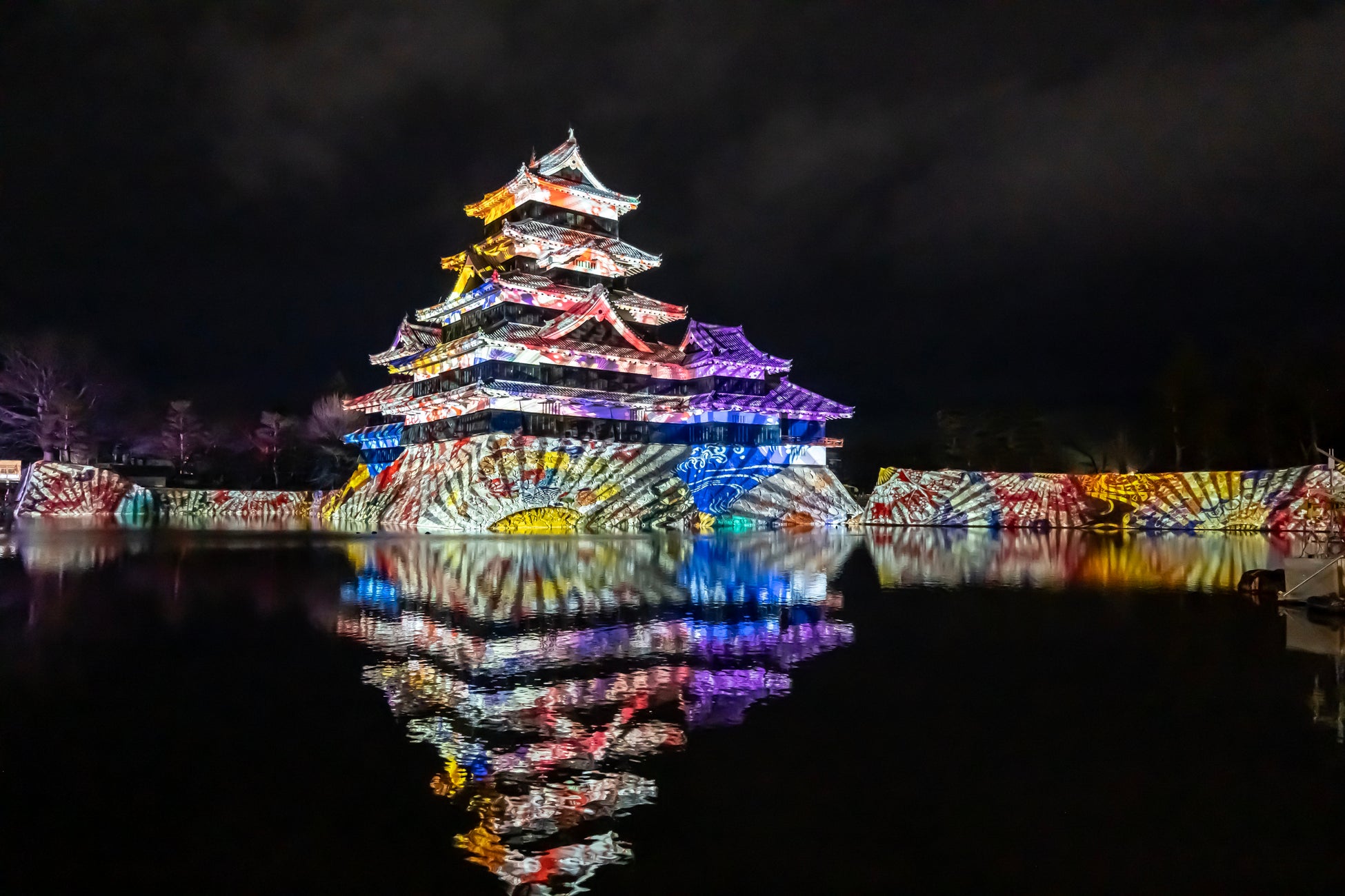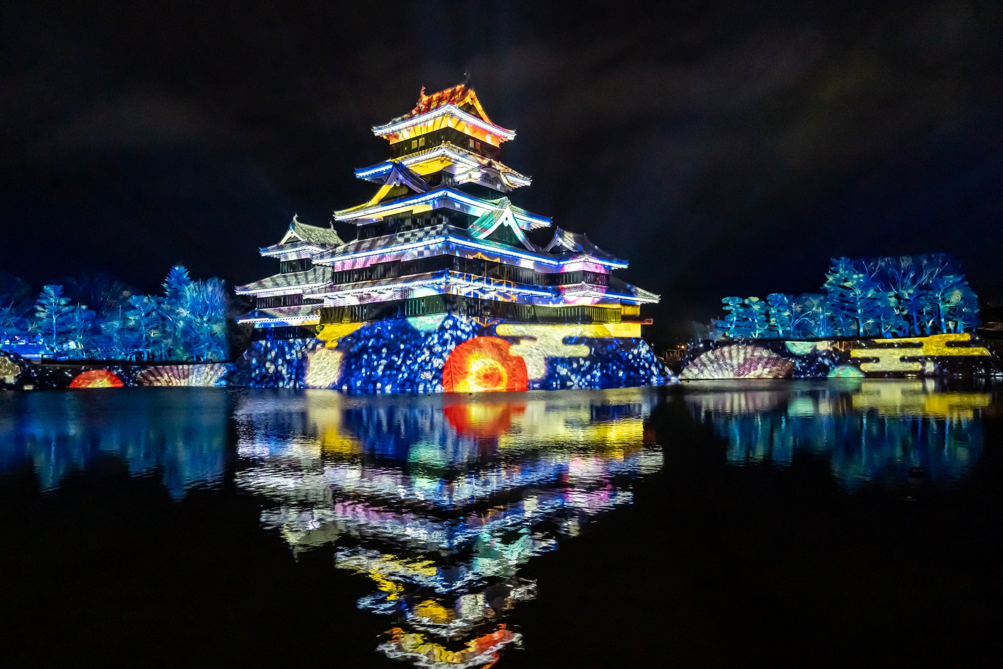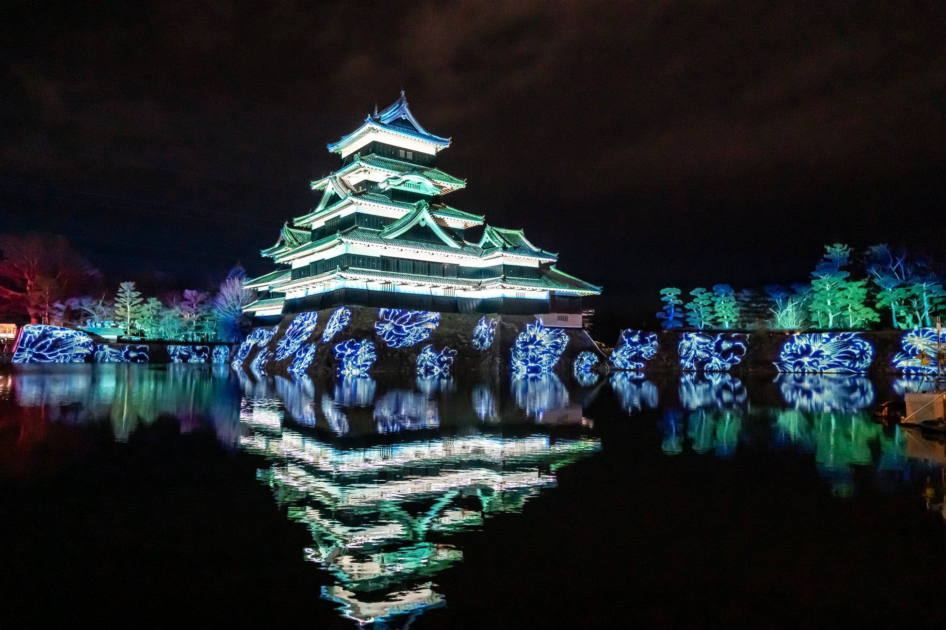 【内容】 現存国宝5天守の一つで五重六階の天守の中で最古の国宝 松本城の天守や石垣に、葛飾北斎や歌川広重による信州ゆかりの浮世絵や豪壮な天守を築いた松本城主・石川数正が描かれた屏風絵が立体的に躍動するデジタルアニメーション、松本てまりや深山織、藍染めなど松本市ならではの伝統工芸をモチーフとしたデジタルアート、春に咲き誇る北アルプスの花々など、ダイナミックで幻想的なプロジェクションマッピング映像を投影します。