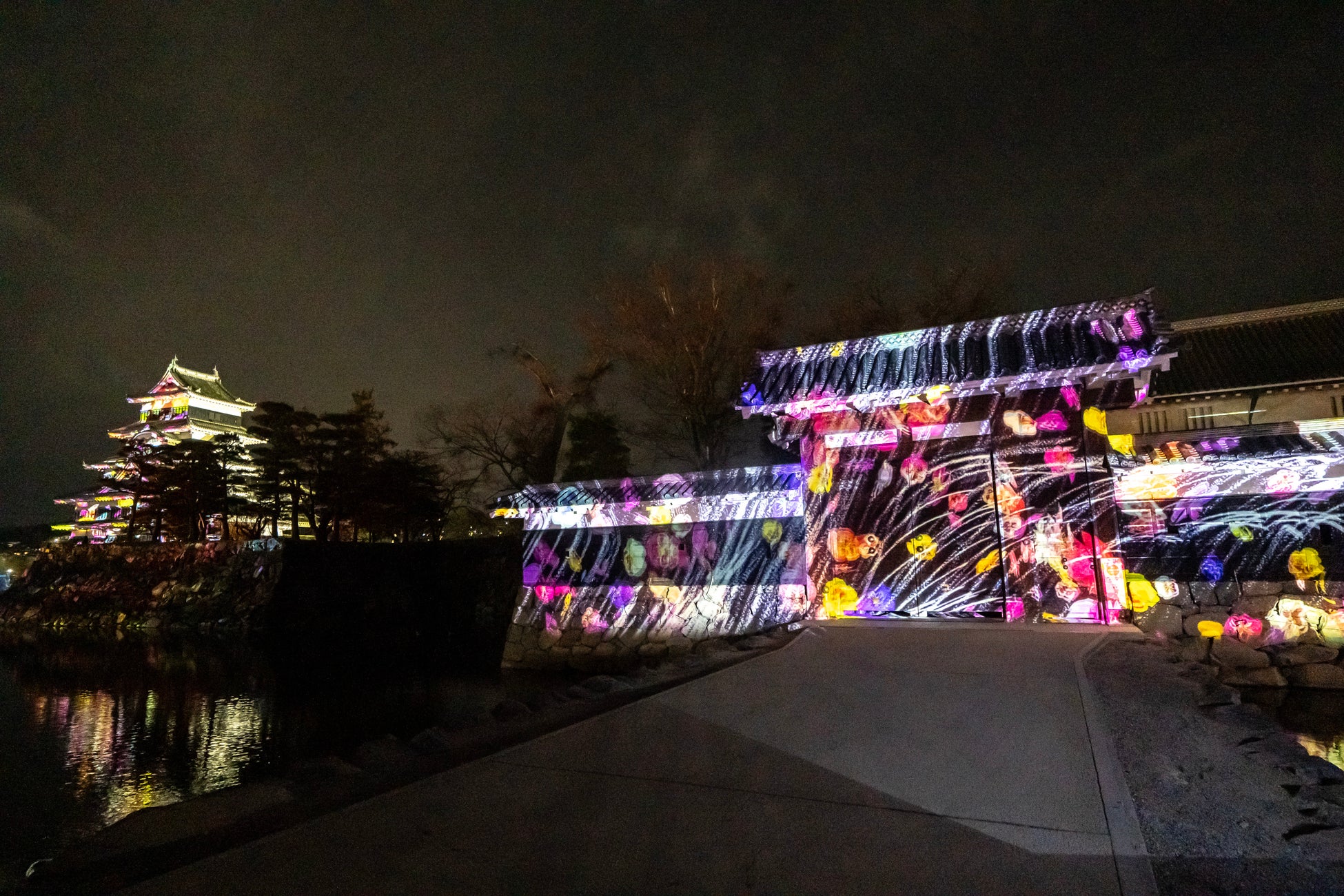 さらに、先端技術を駆使し、天守でのプロジェクションマッピングとレーザーマッピングを融合させた迫力ある光の演出、園路でのインタラクティブコンテンツ、城門でのプロジェクションマッピング、松本城公園のライトアップなど、さまざまな光のアートを体験いただけます。