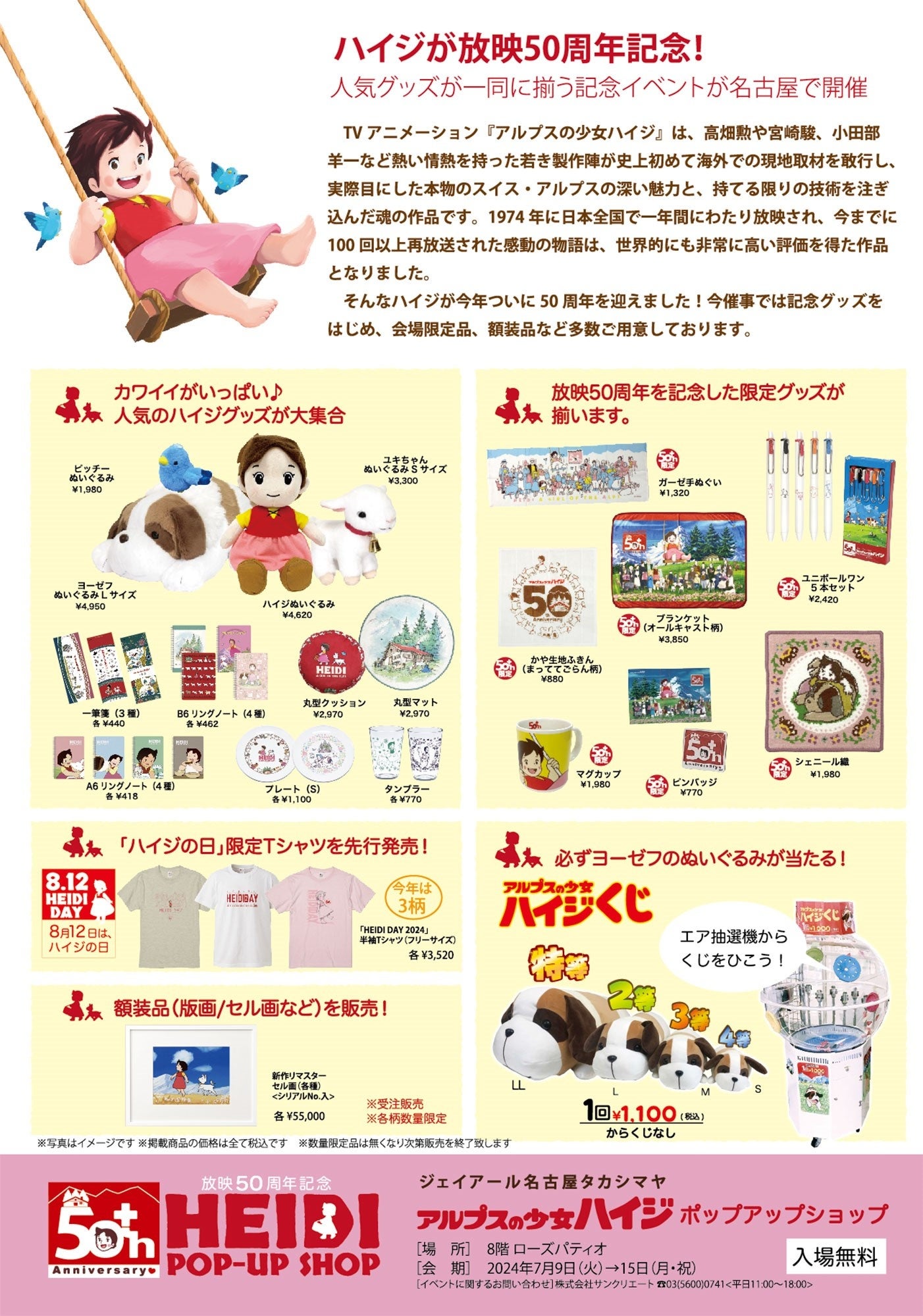 【名古屋タカシマヤ】『放映50周年記念アルプスの少女ハイジ期間限定ショップ』を初開催