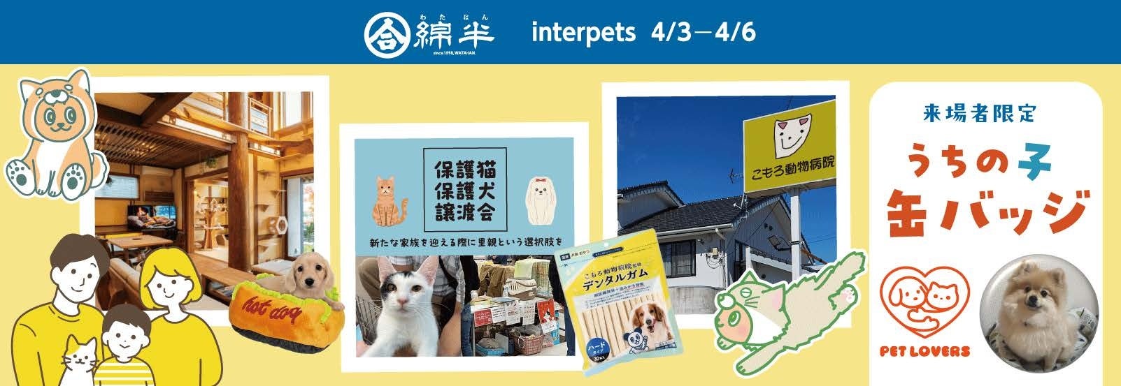 綿半パートナーズ株式会社(長野県飯田市 代表取締役社長︓野原勇)およびグループ会社の株式会社綿半林業 ・株式会社綿半インテック・有限会社小諸動物病院はこの度4月3日(木)– 4月6日(日)に東京で開催される日本最大級の国際ペット産業見本市「インターペット」に出展いたします。