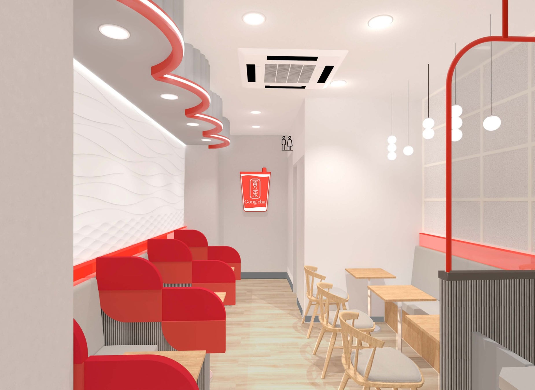 「ゴンチャ 原宿神宮前店」は、店舗外観や内観・インテリアを刷新した日本初となるコンセプトストアです。ブランドカラーのゴンチャレッドを基調とした店内では、「おしゃべり歓迎」を象徴する”1.5人席”も完備。1.5人席は、2人がけよりも少し狭く、両サイドに仕切りのついた席のことで、2人で座ると少し距離が近くなり、おしゃべりがしやすいと、お客様から好評をいただいています。