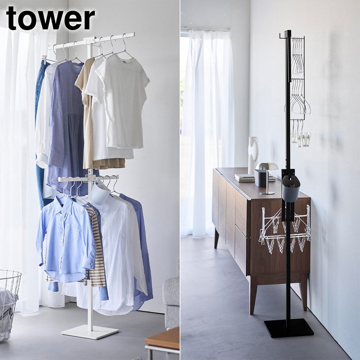 支柱には、洗濯ハンガーやピンチハンガー、洗濯ばさみを入れた小物ケースなどを引っ掛けて収納できるので、洗濯物を効率よく干せます。