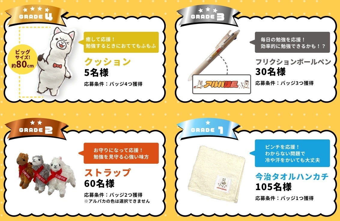 資格取得支援スクールの日建学院を運営する株式会社建築資料研究社(所在地:東京都豊島区、代表取締役社長:馬場栄一)は、会社創立55周年を記念し、クイズに参加した方の中から抽選で合計200名様に賞品をプレゼントする「答えて貰える!アルパ課長からの挑戦状~ニッチすぎる!?日建学院クイズ~」を、2025年1月31日(金)まで日建学院ファンサイトにて実施中です。