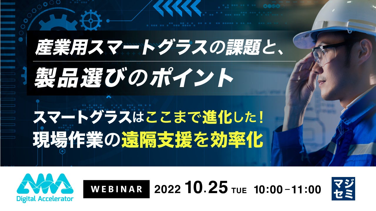 マジセミ株式会社は産業用スマートグラスの課題と、製品選びのポイントというテーマのウェビナーを開催します。