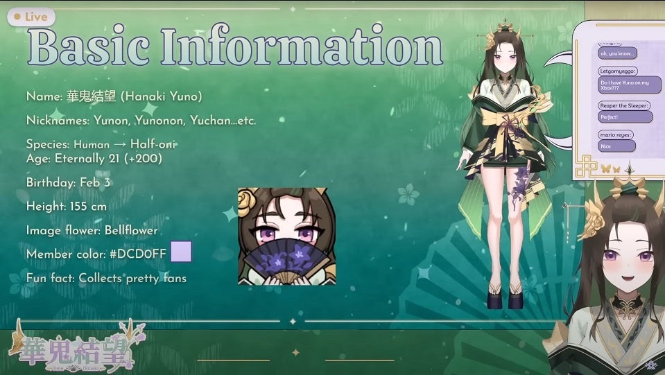 この度デビューした、ユニット「花美月-Hanamizuki-」は、剣士の 「月蝶蘭(つきは らん)」、忍者の「錦野楓夜(にしきの かや)」、鬼の「華鬼結望(はなき ゆの)」の3人で構成され、和風な見た目をしながらも英語での配信活動を行う、今までに無い英語圏向けVTuberユニットです。彼女たちの活躍にぜひご注目ください。