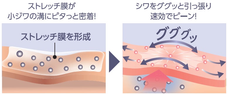 1. 瞬時にシワを引っ張り※1、ハリ感を与える速効ストレッチ成分※2