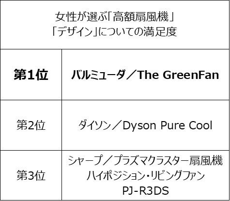 高額扇風機の購入理由は「デザインがよかった」/「デザイン」についての満足度第1位は「バルミューダ/The GreenFan」、利用率第1位は「ダイソン/Dyson Pure Cool」