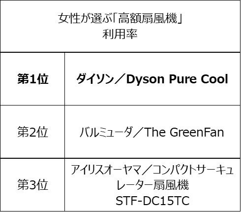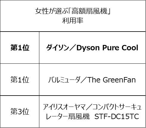 ◆女性が選ぶ「高額扇風機」ランキング、利用率1位は「ダイソン/Dyson Pure Cool」