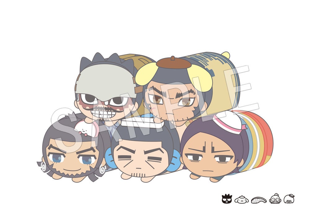 ラインナップ:鶴見×バッドばつ丸、谷垣×ポムポムプリン、キロランケ×KIRIMIちゃん.、月島×ハンギョドン、鯉登×タキシードサム(全5種)