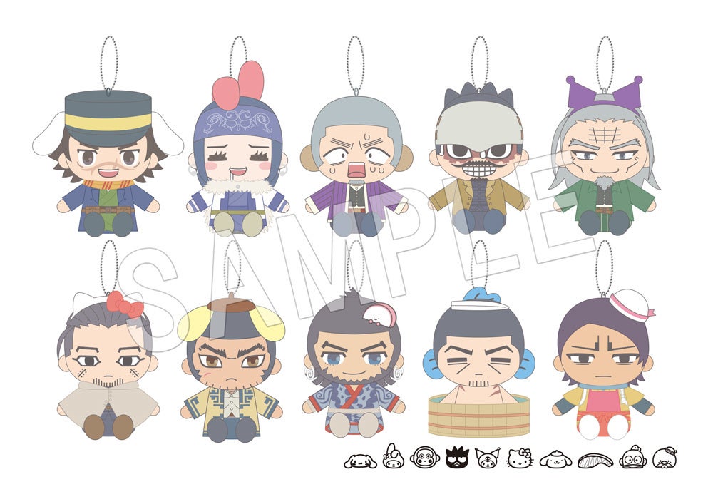 TVアニメ『ゴールデンカムイ』より、まんまる可愛いぬいぐるみマスコット「もちころりん」や、座ったポーズがかわいい「お座りぬいぐるみマスコット」のサンリオキャラクターズコラボバージョンが登場!