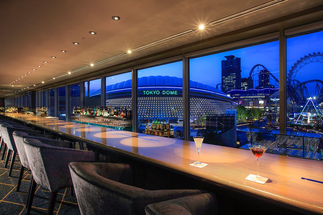 18.44メートルのロングカウンターから眺める東京ドームシティのイルミネーションが美しいメインバーで贅沢なひとときをお過ごしください。