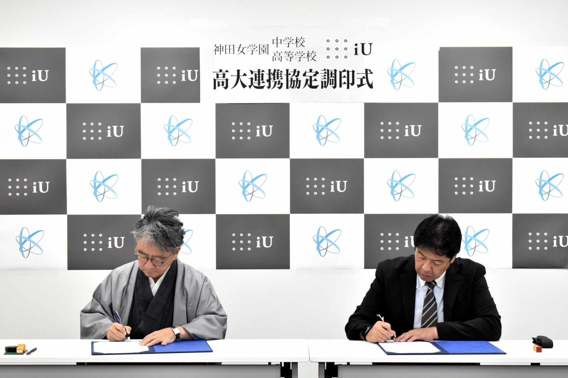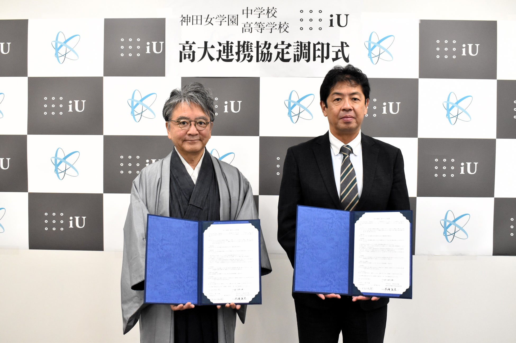 iU(東京都墨田区、学長 中村伊知哉、http://www.i-u.ac.jp)は、神田女学園中学校高等学校(東京都千代田区、校長 芦澤康宏)と高大連携協定を締結し、2024年10月16日(水)に高大連携協定式を行いました。