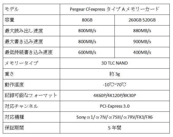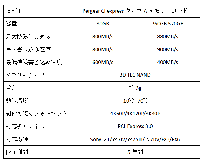Pergear公式:https://pergear.co.jp/collections/cfexpress-type-a-cards